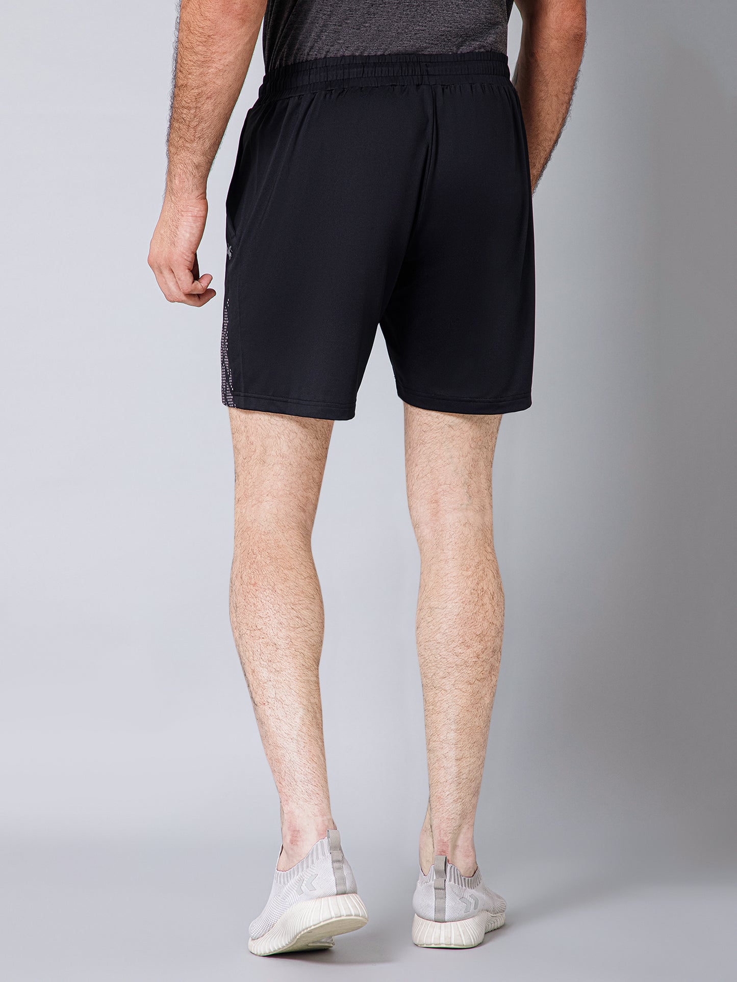 Men Printed Above Knee Regular Fit Active Wear Black Shorts