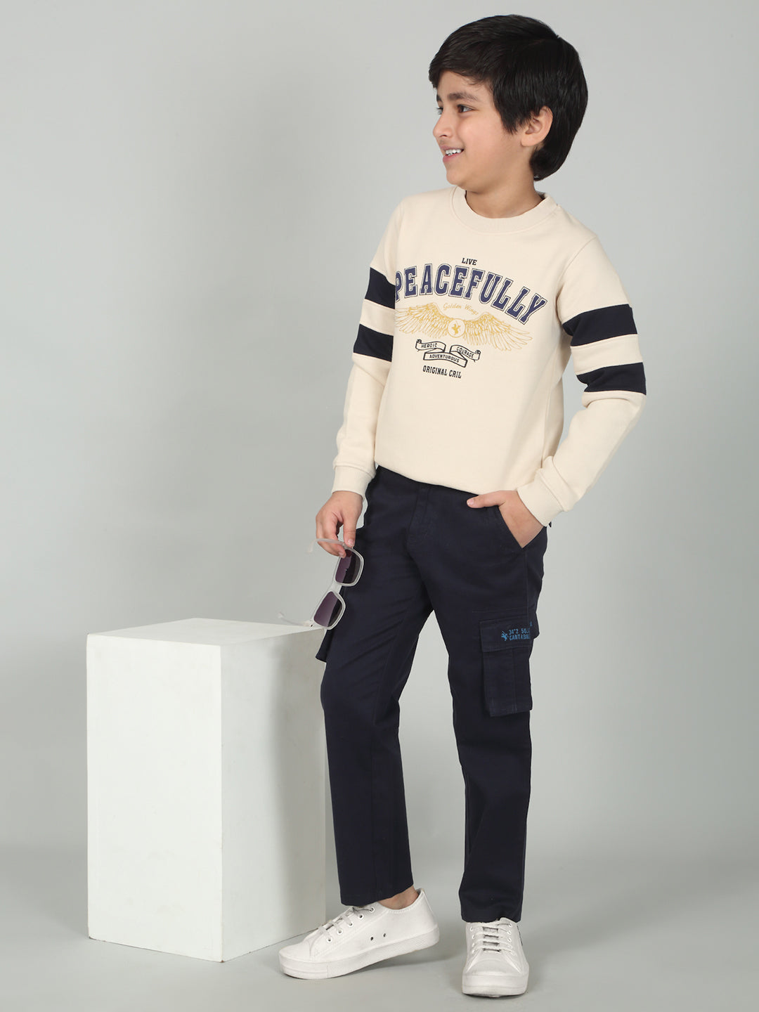 Boys Beige Color Block Round Neck Full Sleeves Casual Sweatshirt