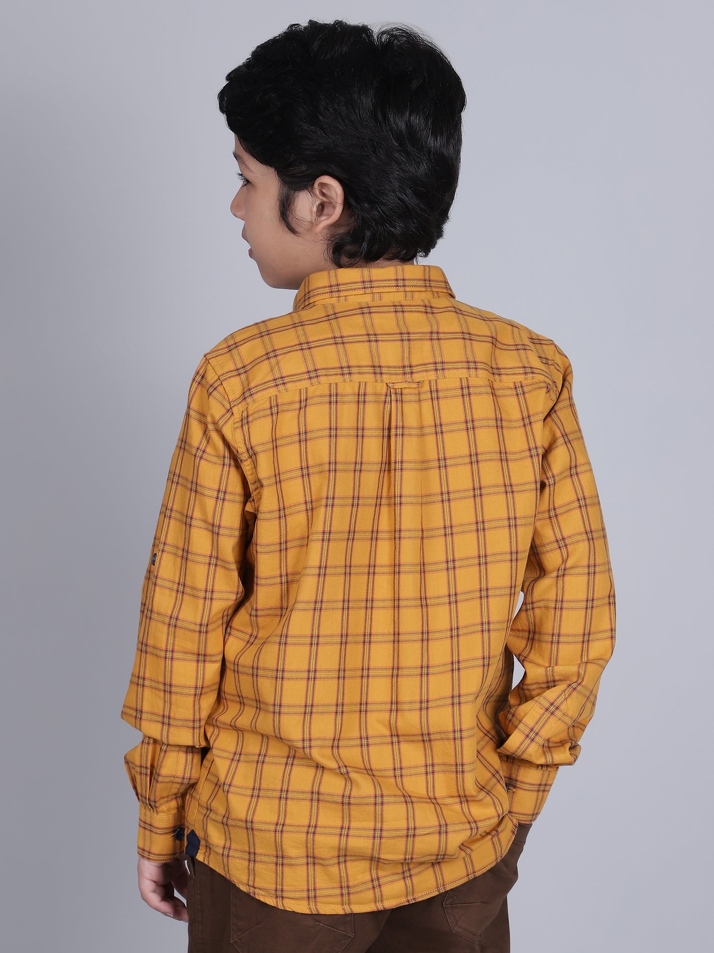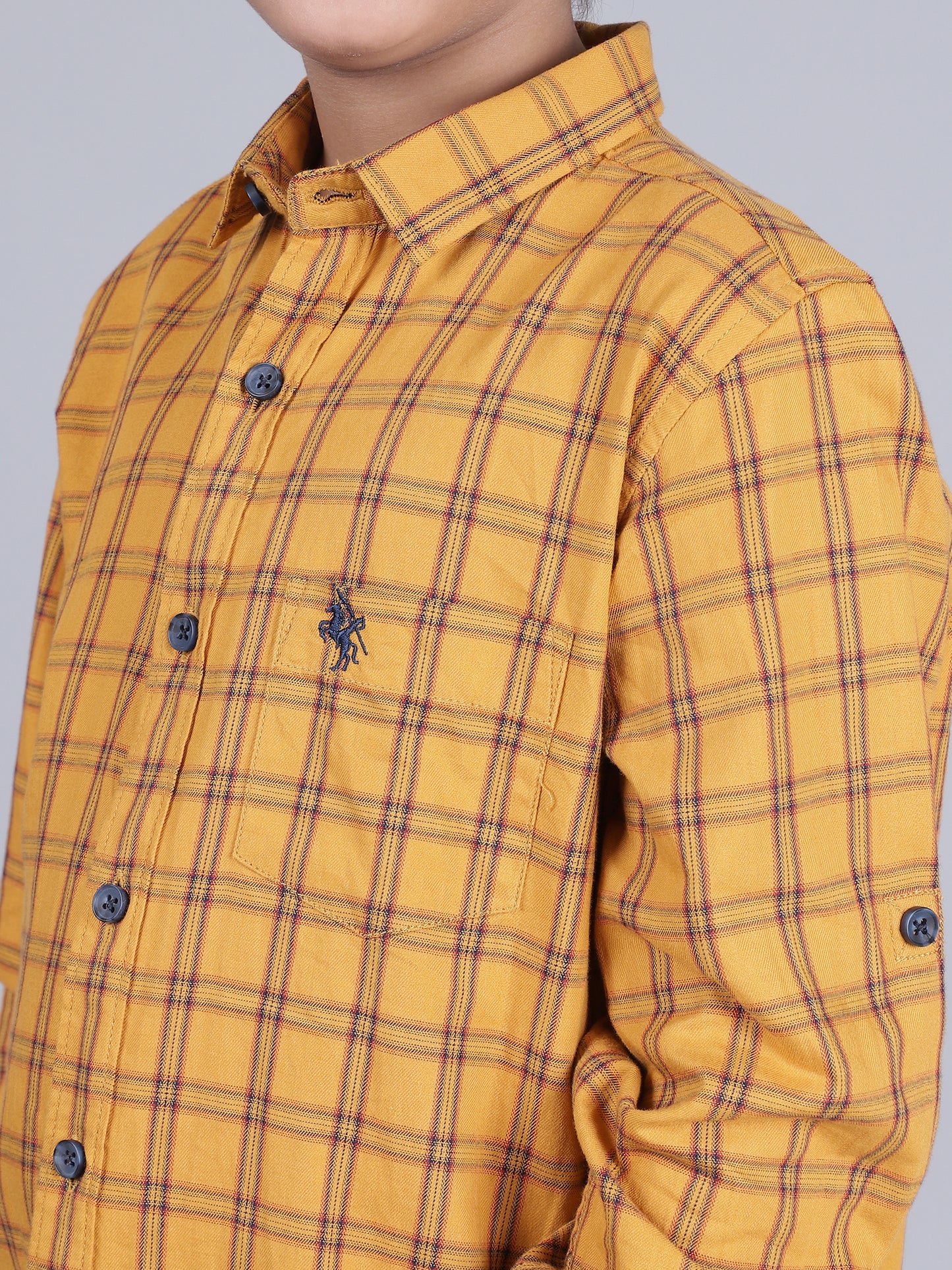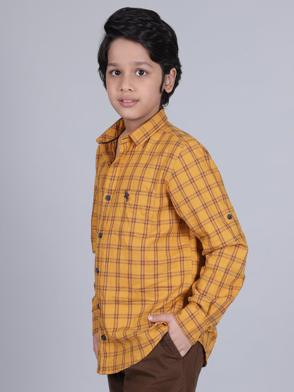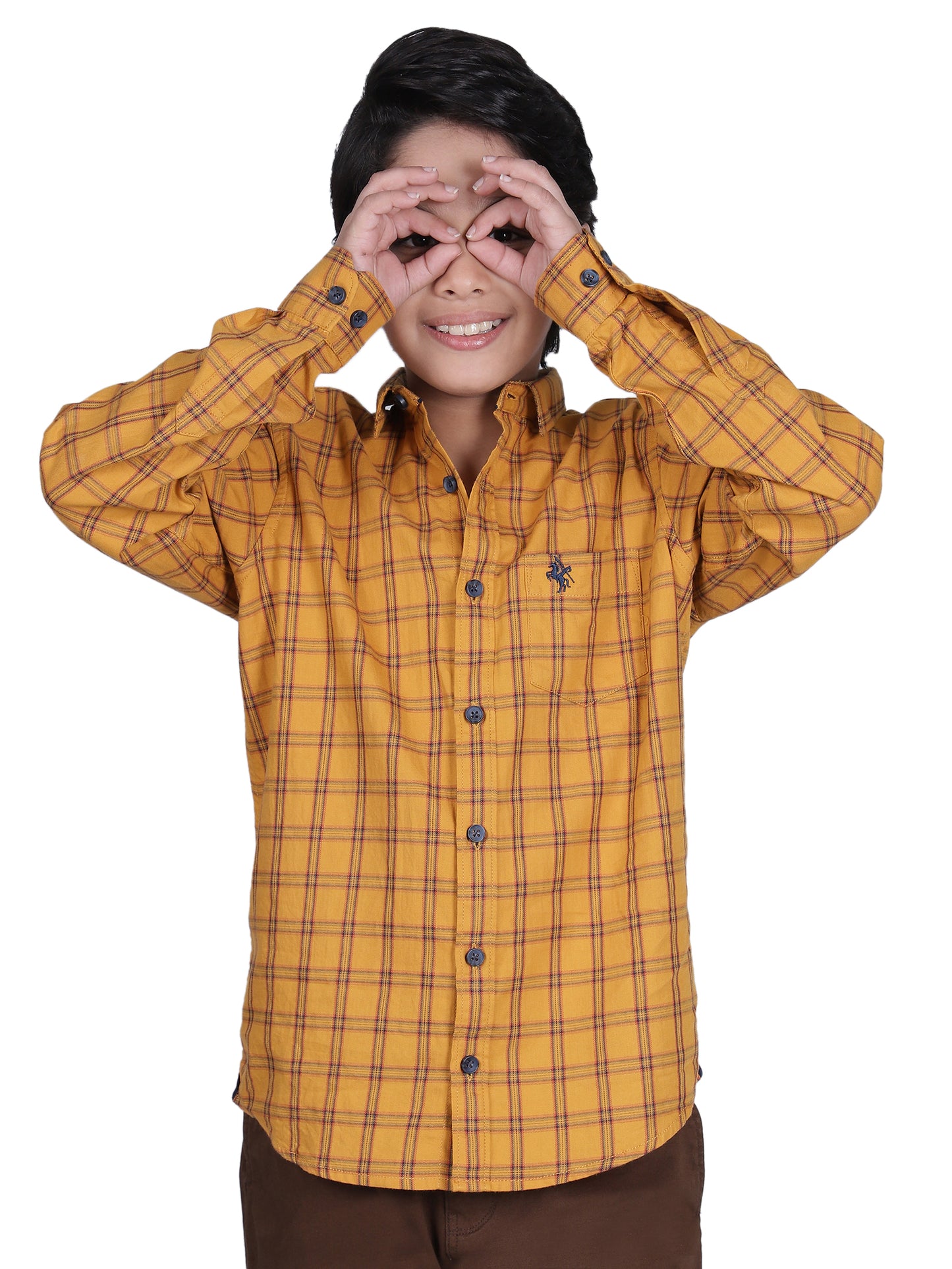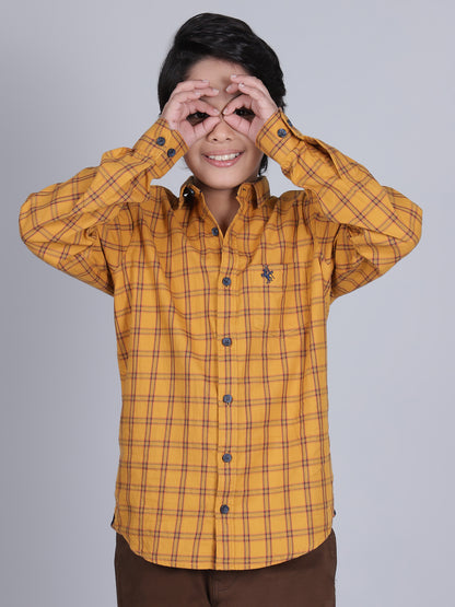 Boys Checkered Mustard Full Sleeves Spread Collar Casual Shirt