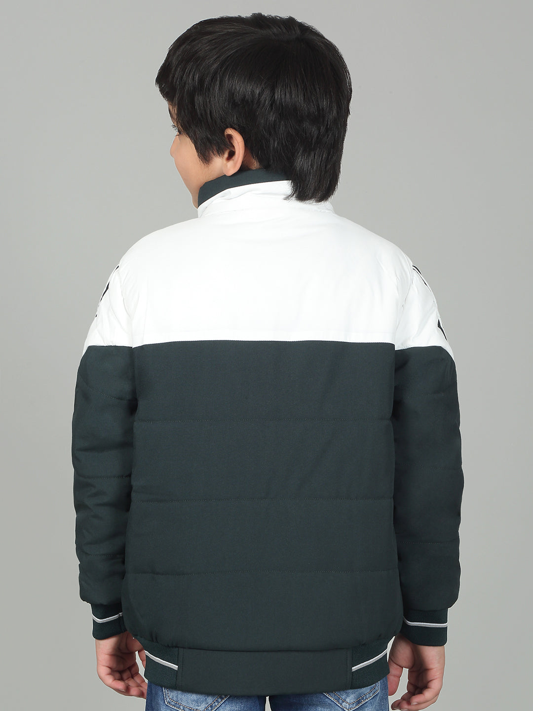 Boys Green Mock Neck Color Block Full Sleeves Casual Jacket