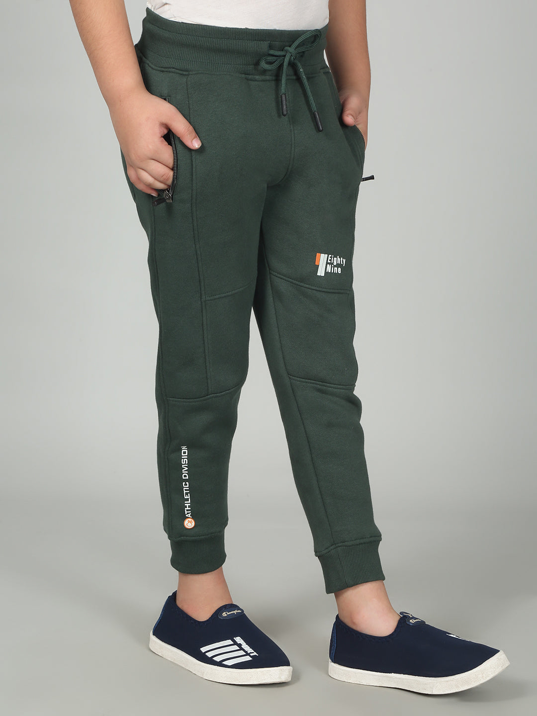Boys Olive Solid Casual Track Pant