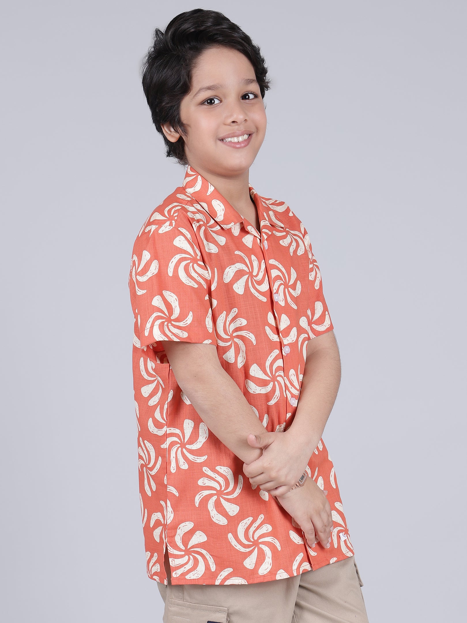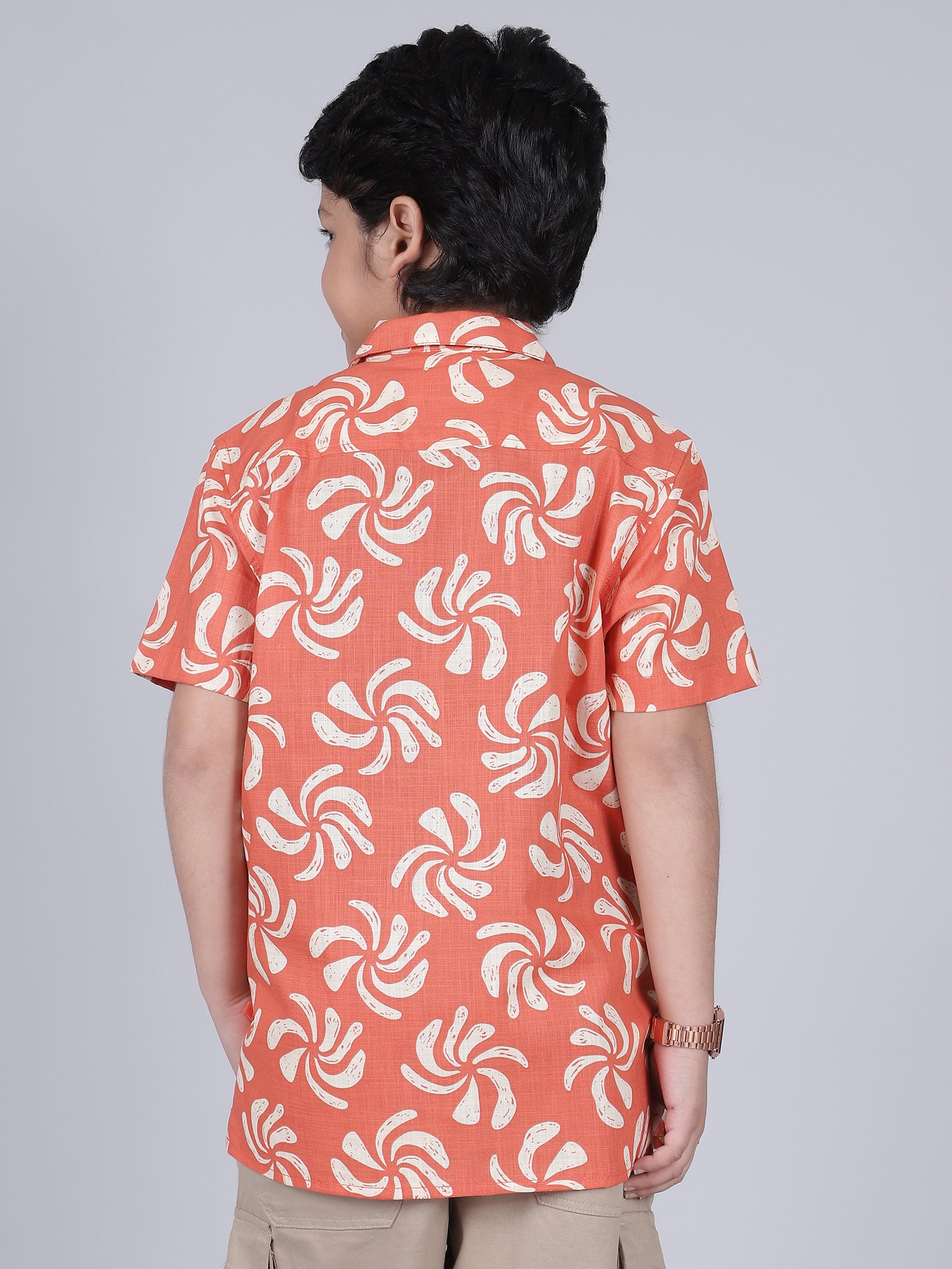 Boys Printed Red Half Sleeves Spread Collar Casual Shirt