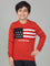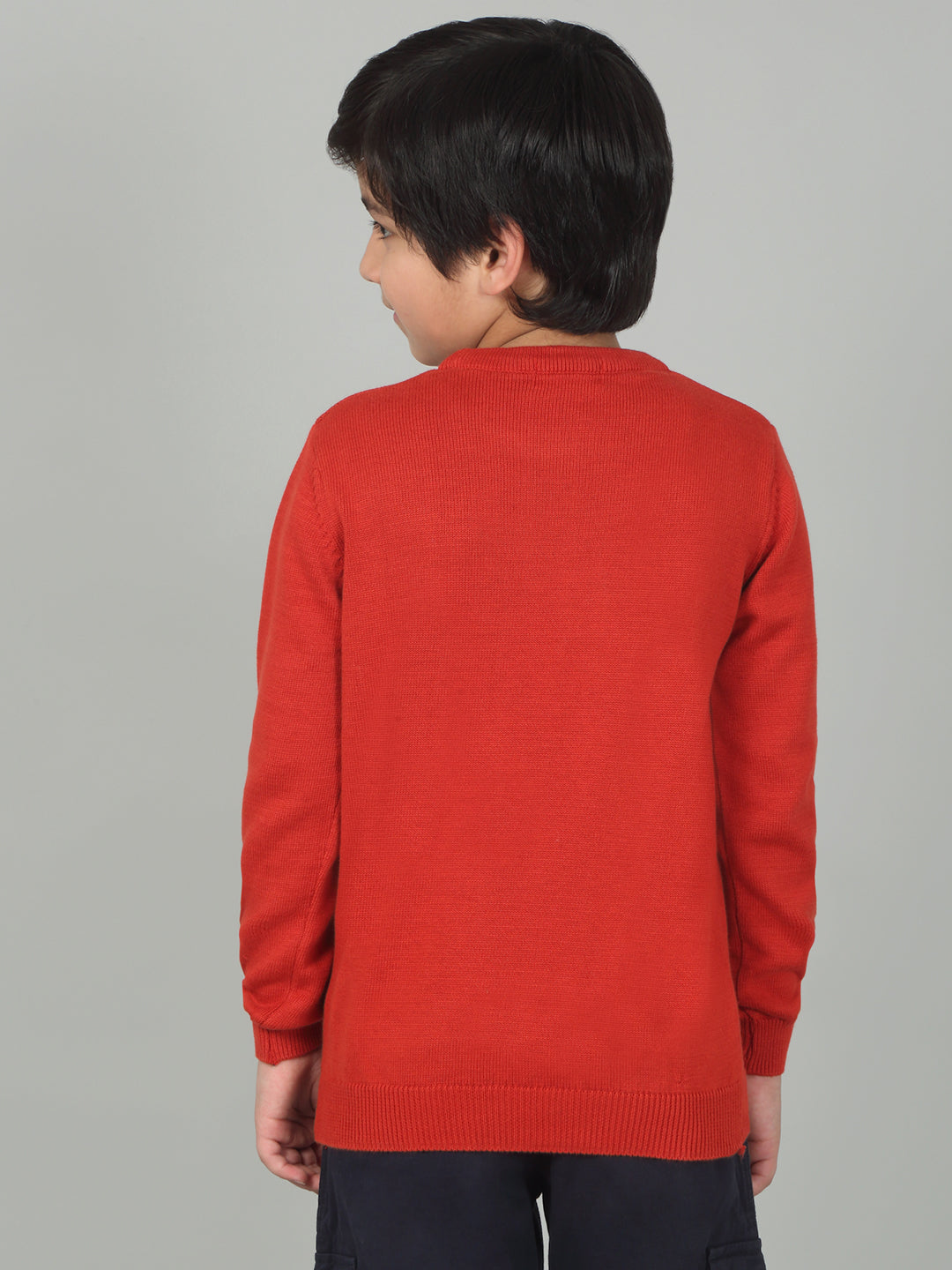 Boys Red Self Design Full Sleeves Casual Sweater
