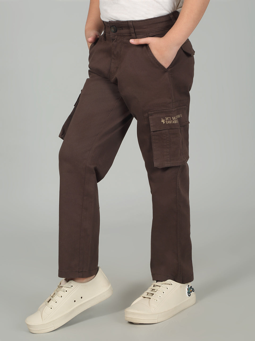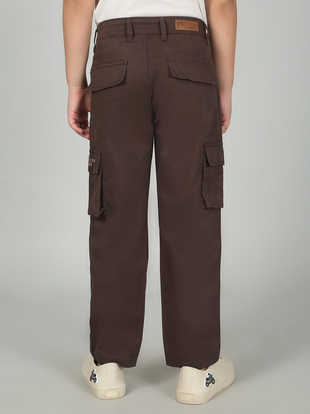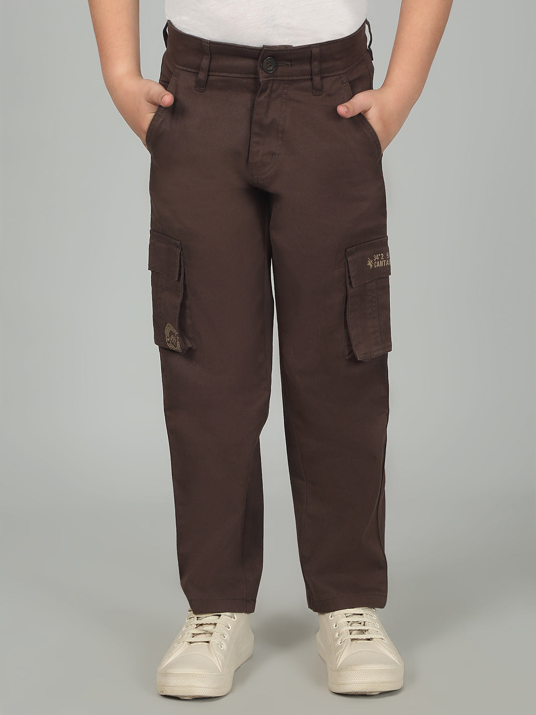 Brown Full Length Solid Regular Fit Casual Cargo for Boys