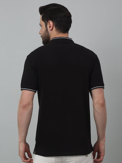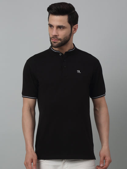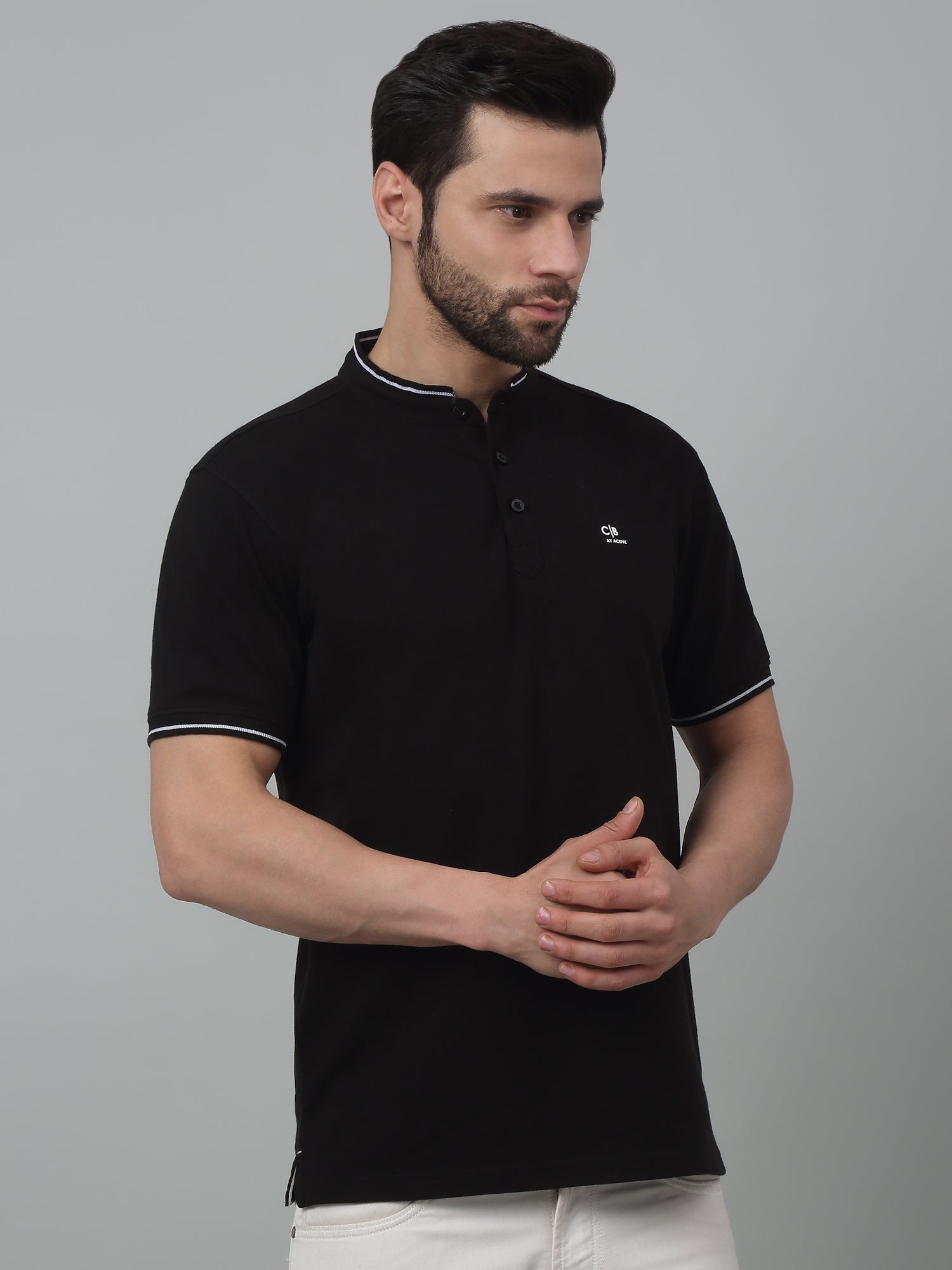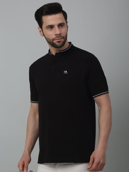 T-Shirt for Men | Breathable & Soft with Color Fastness Regular Fit Mandarin Collar Poly Cotton Fabric Solid Pattern