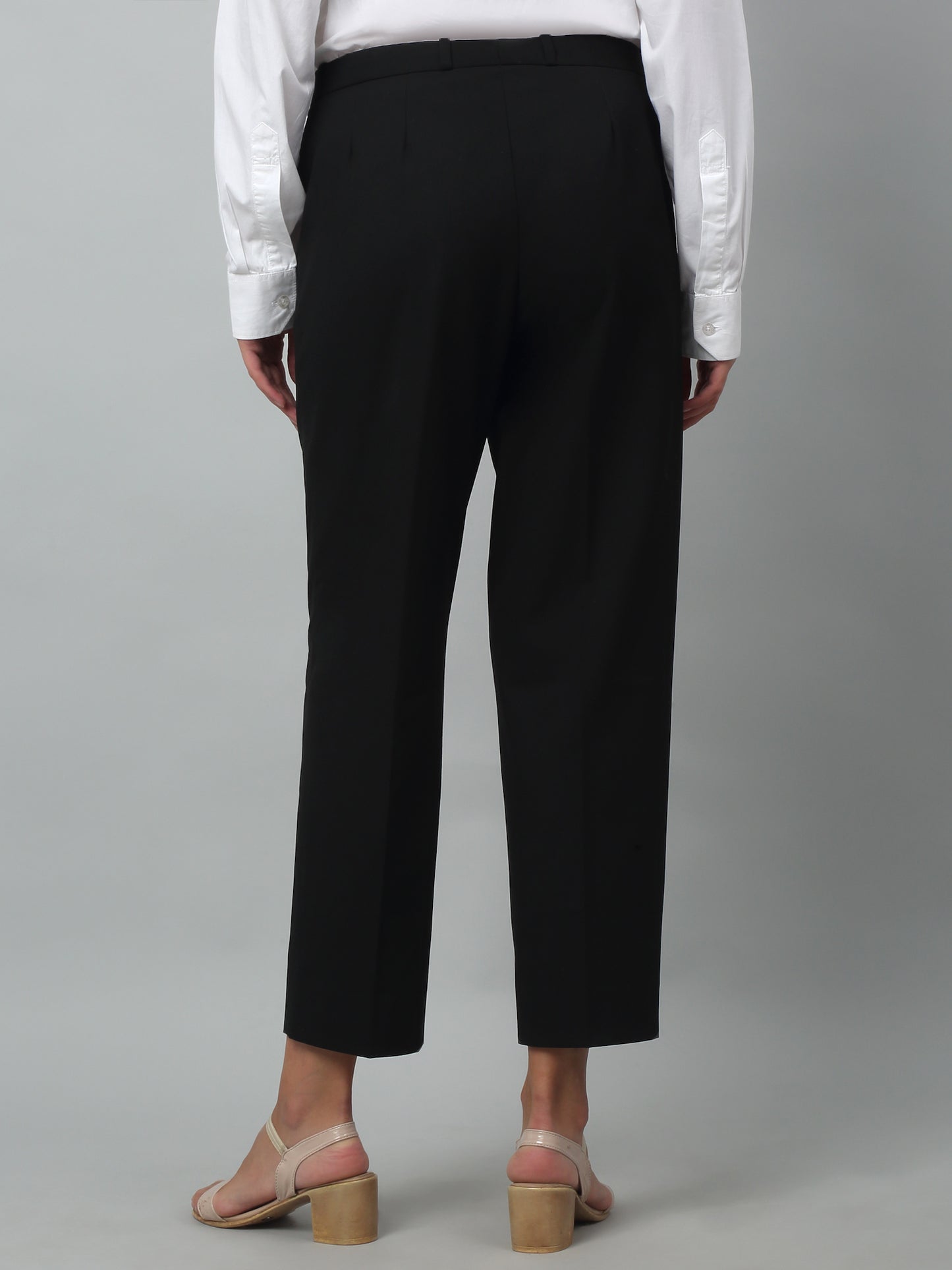 Elevate your Formals fashion with our Black color trouser, designed to offer both style and sophistication. Made Up with finest Poly Viscose Lycra Plain & finely tailored with flat front, High rise full length, our trousers provide a sleek, professional look that’s perfect for the office or formal events. Paired best with blouses or blazers for a polished appearance. Easy machine wash & care. -