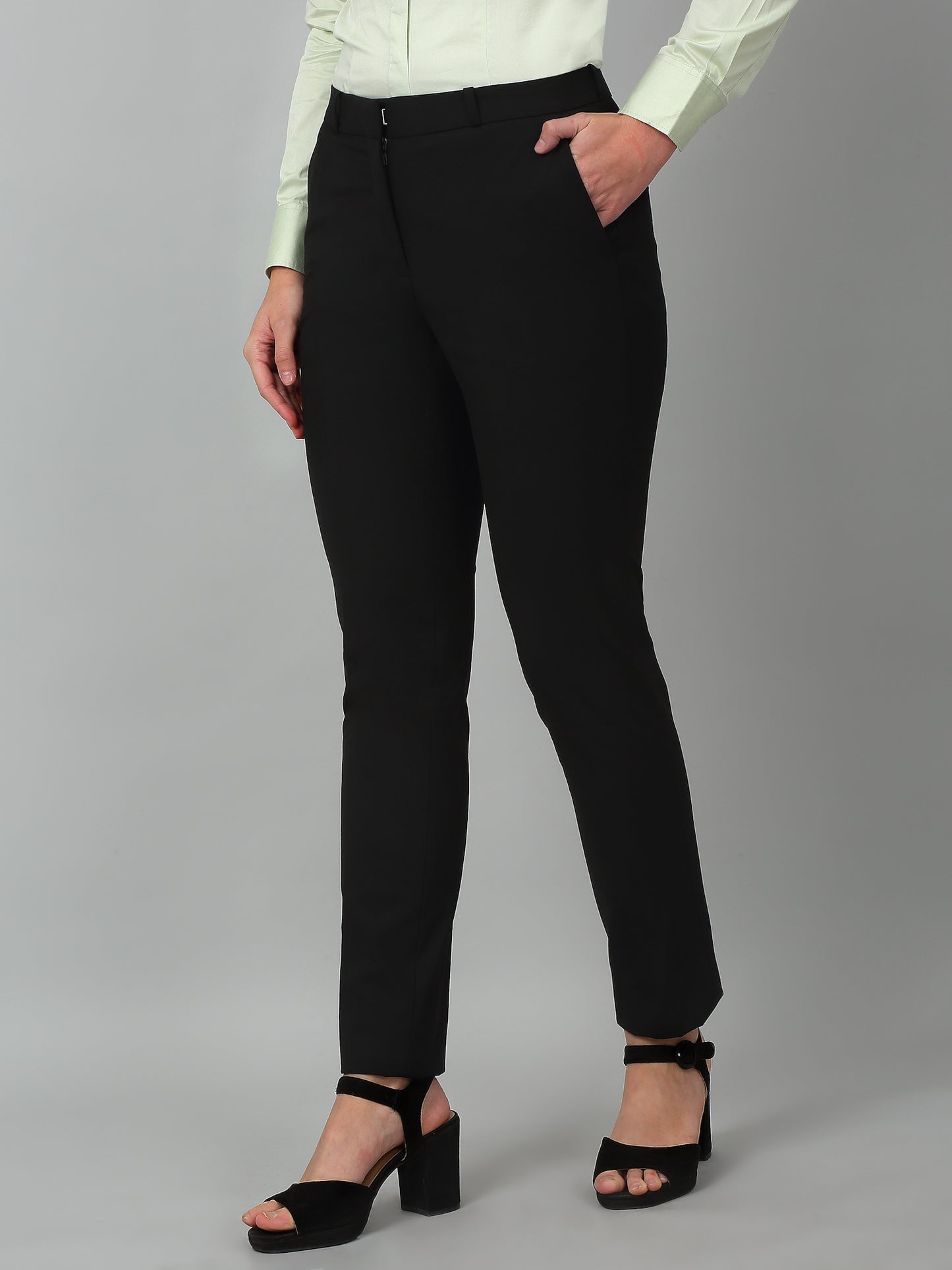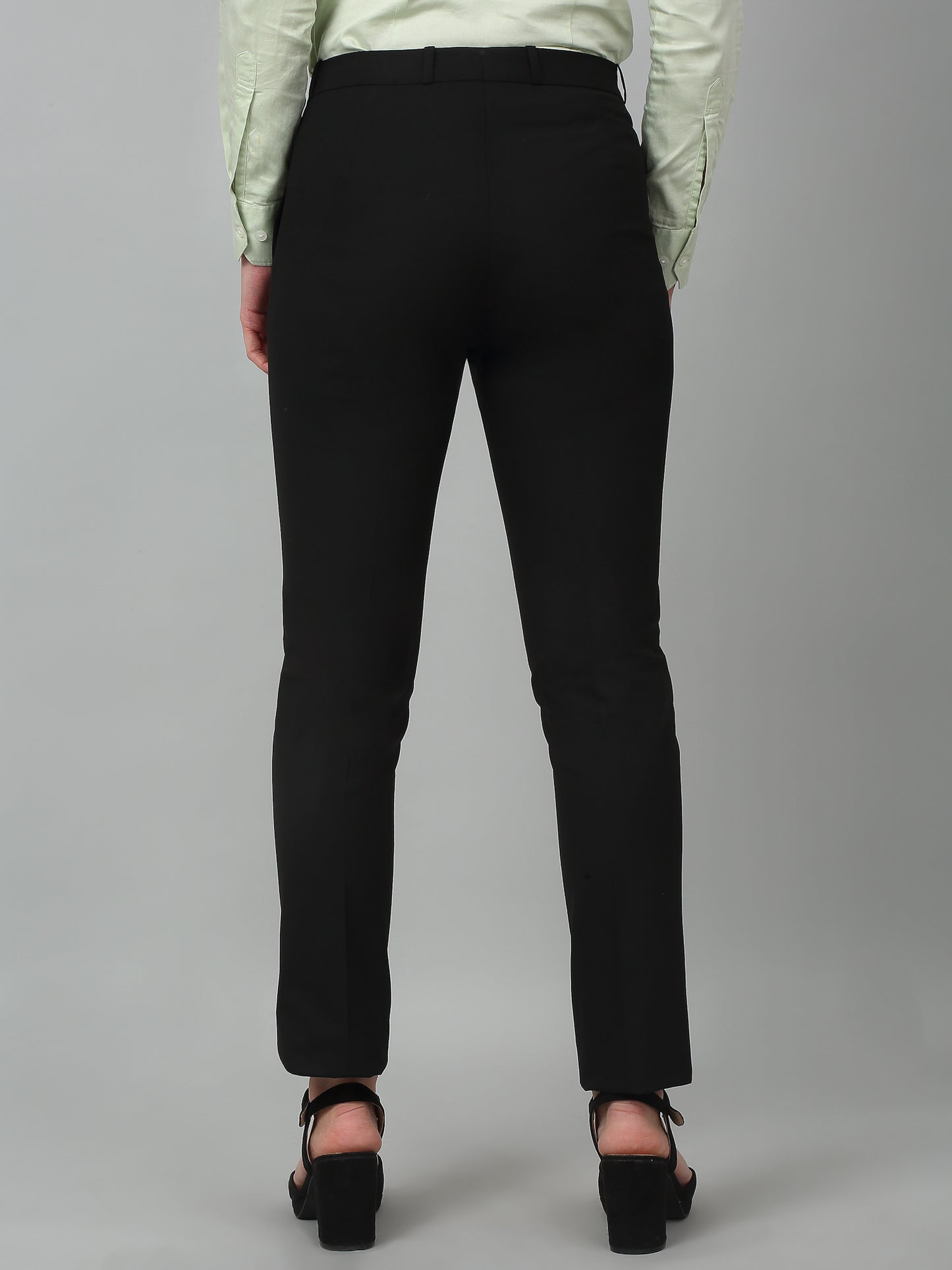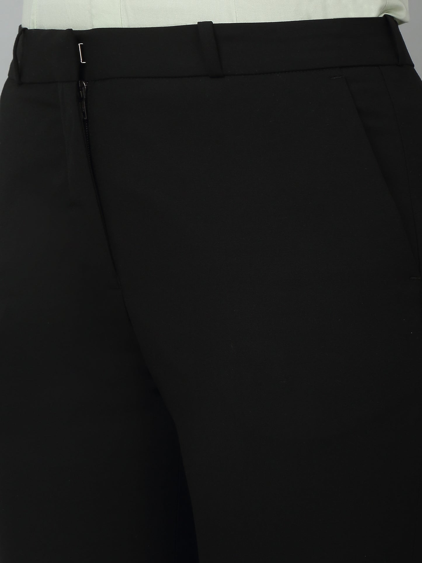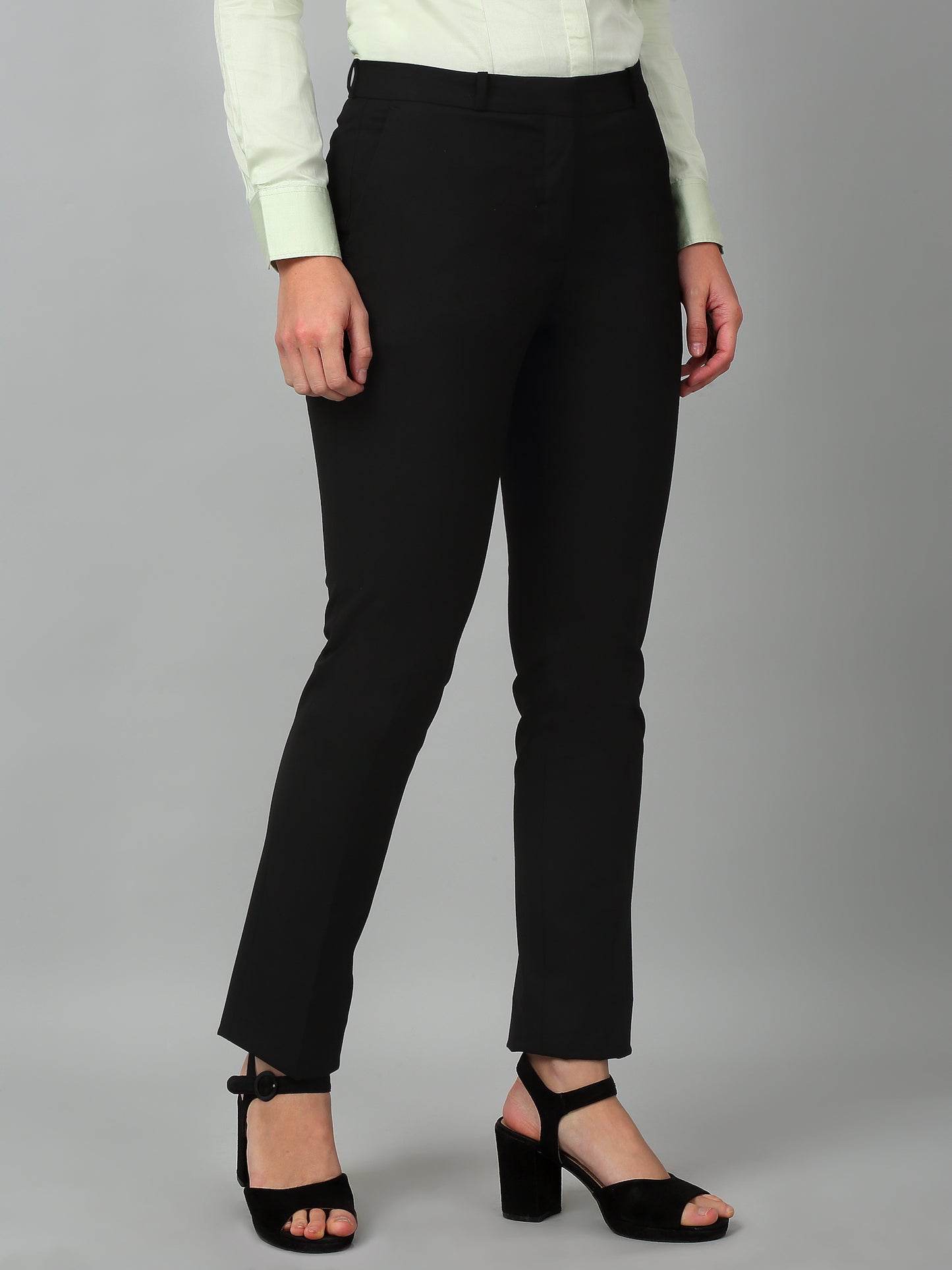 Women's Formal Flat Front Black Full length Mid rise Trousers