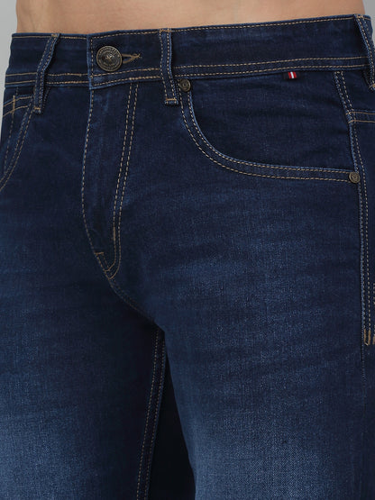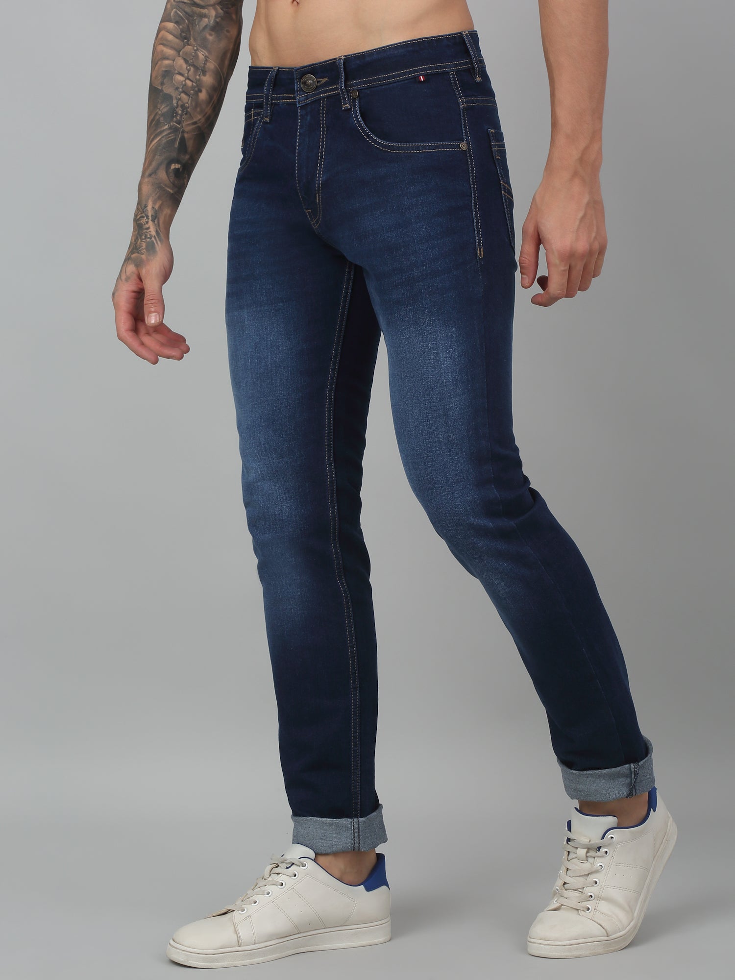 Denim Jeans for Men l Breathable & Soft with Color Fastness Ultra Narrow Fit Cotton Fabric Solid Pattern Button Closure