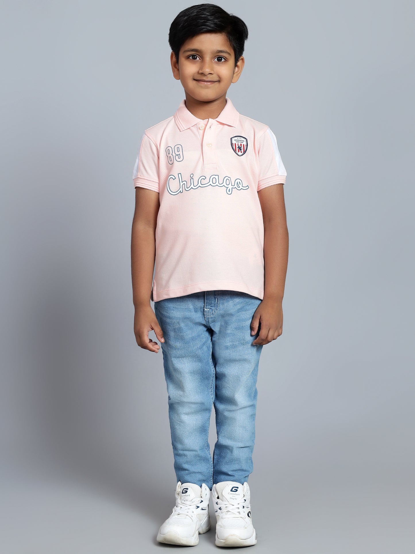 Boys Casual Light Pink Half Sleeve T-Shirt