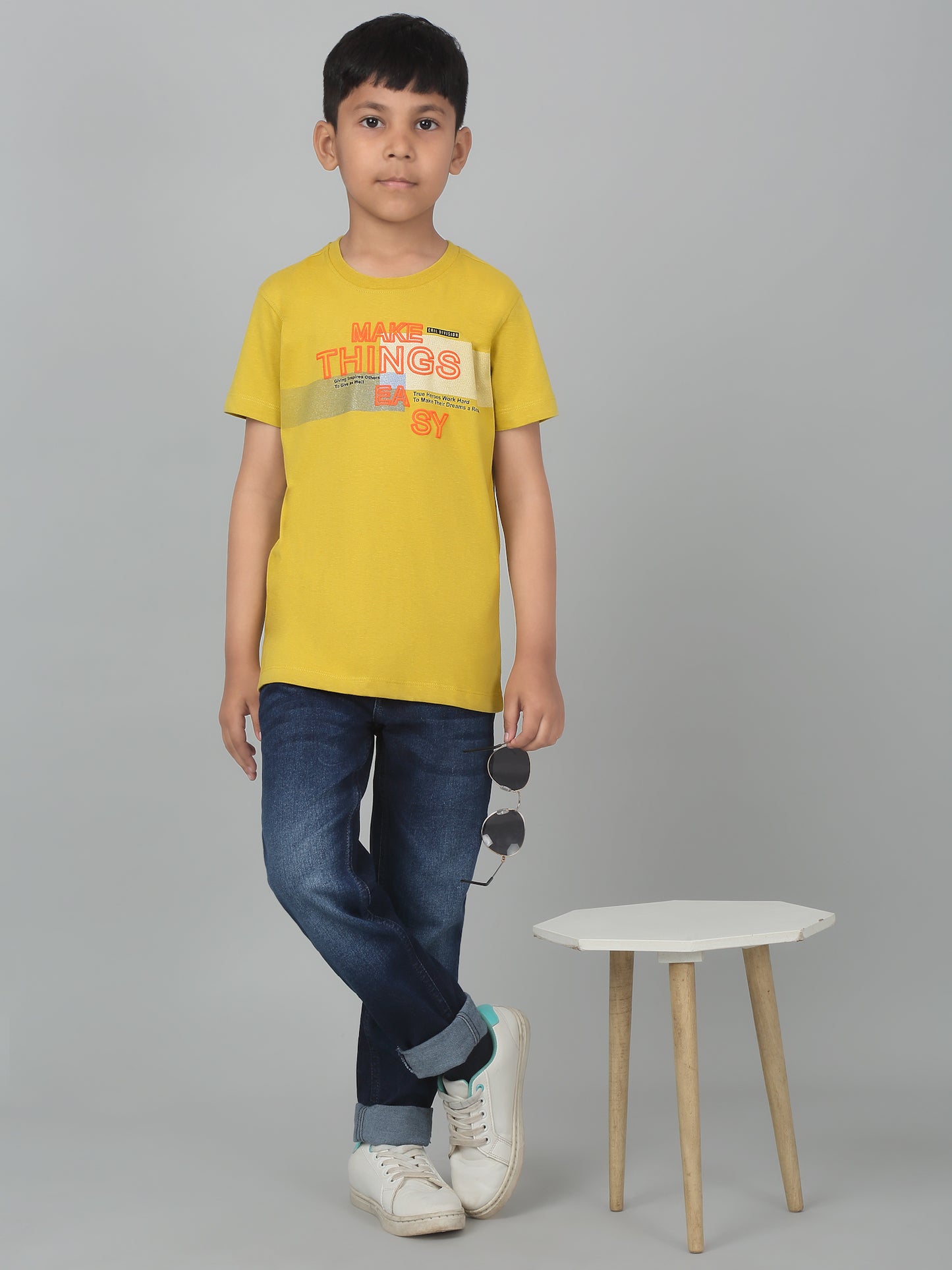 Boys Casual Yellow Half Sleeve T-Shirt