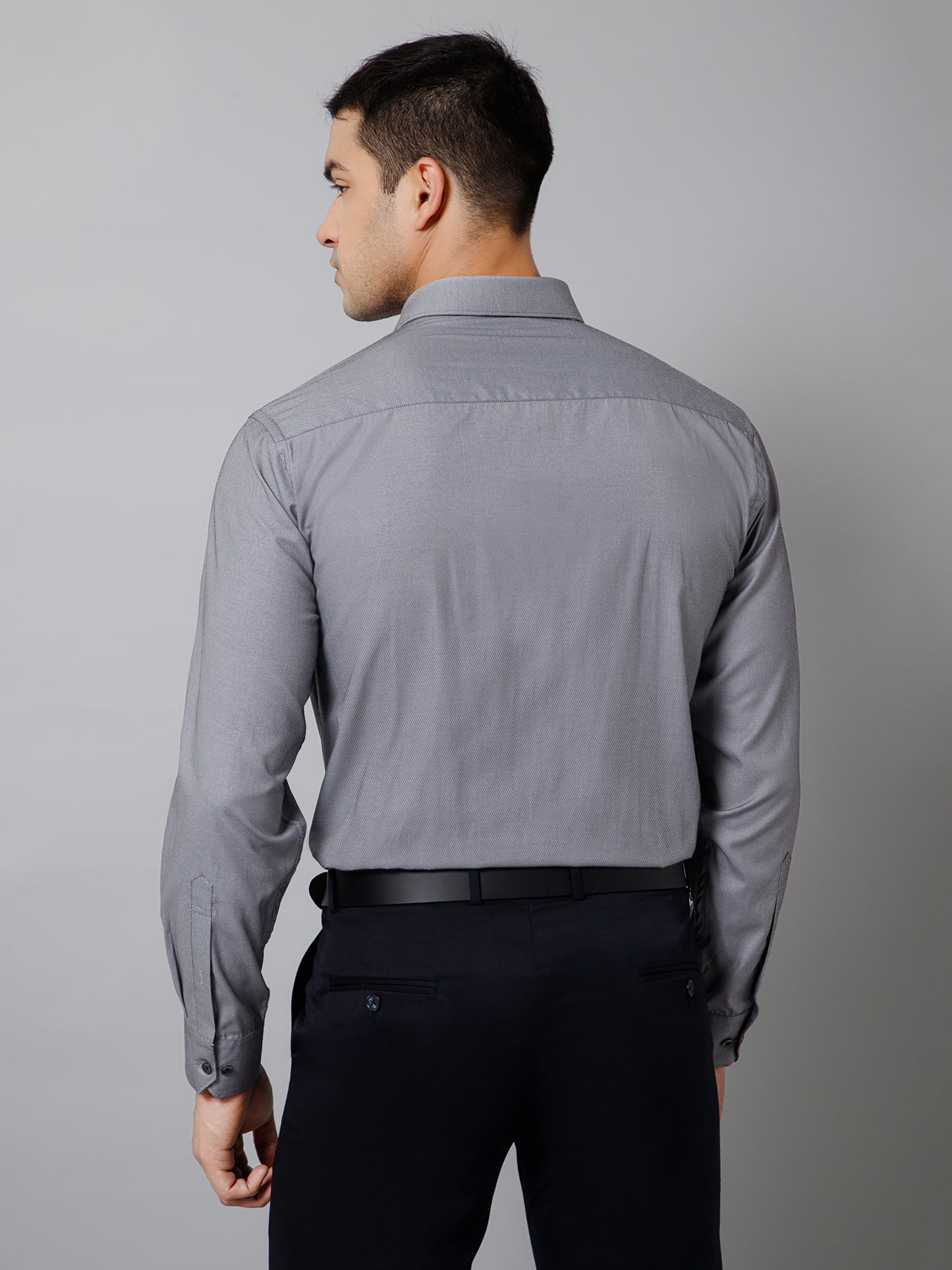 Men's Grey Formal Self Textured Full Sleeve Shirt