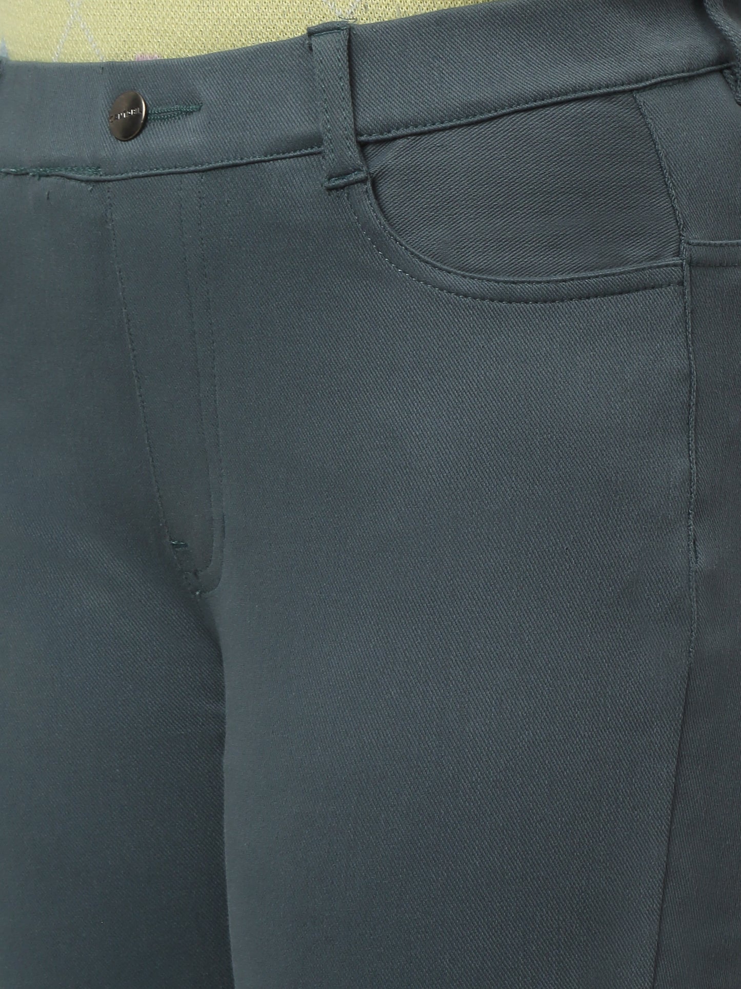 Girls Green Soild Cotton Blend Stretchable Jeggings