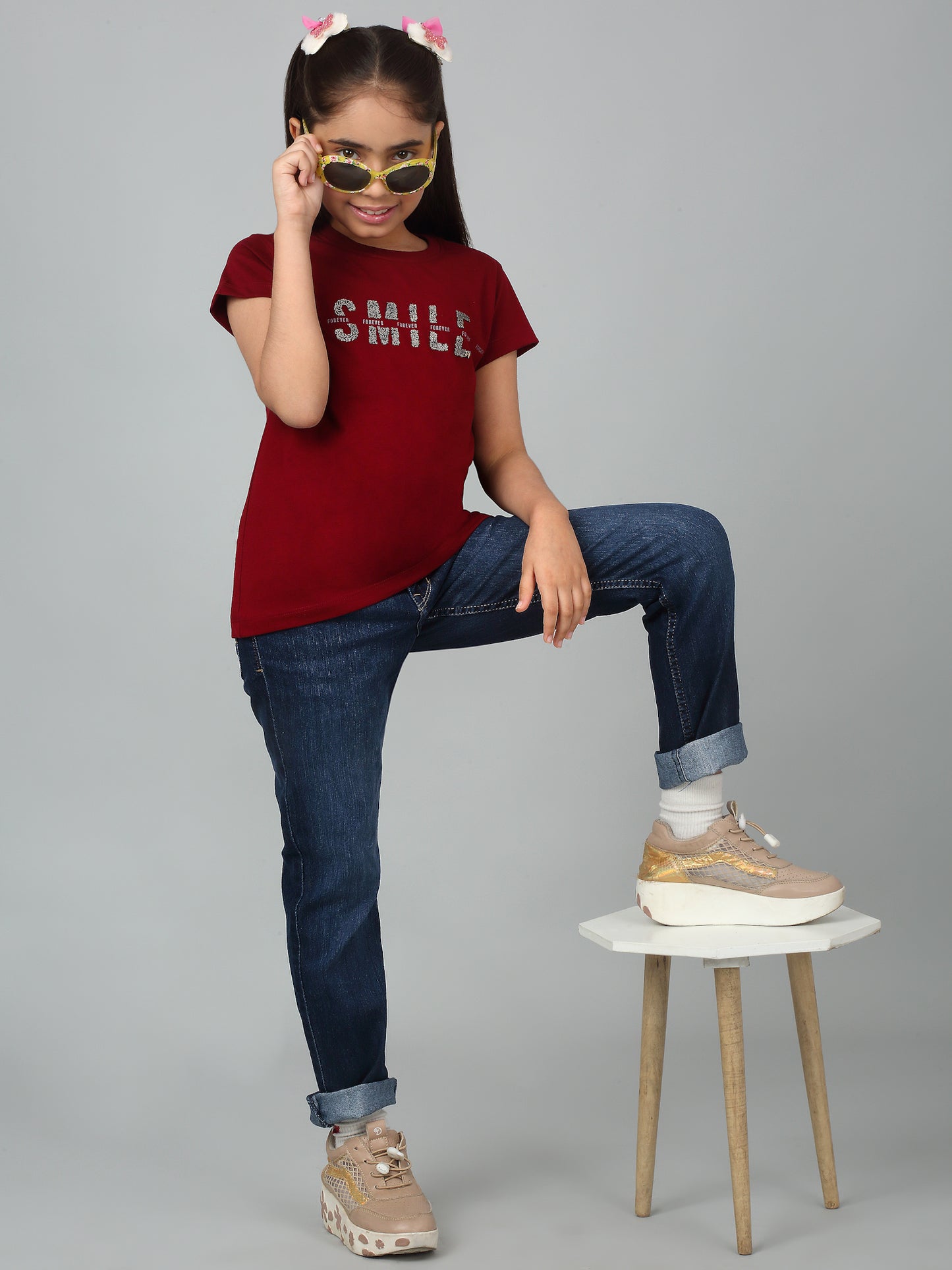 Girls Casual Maroon Half Sleeves T-Shirt