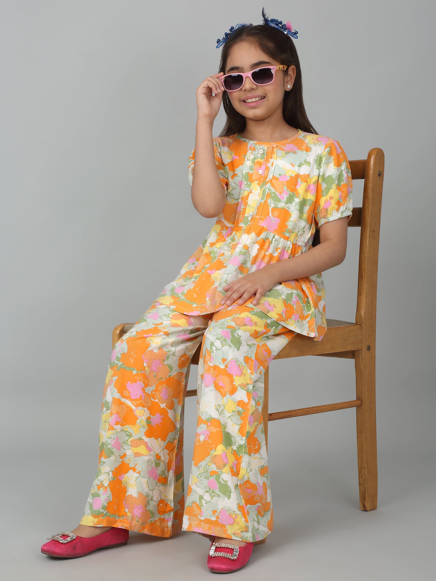 Girl's Orange Printed Co-Ord Set