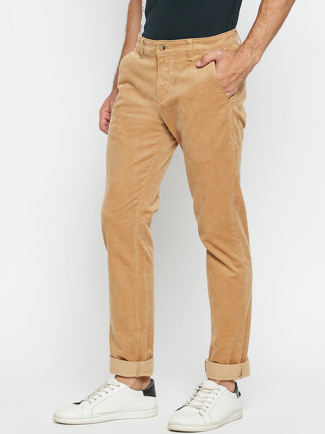 Men's Casual Flat front Khaki Corduroy Trousers