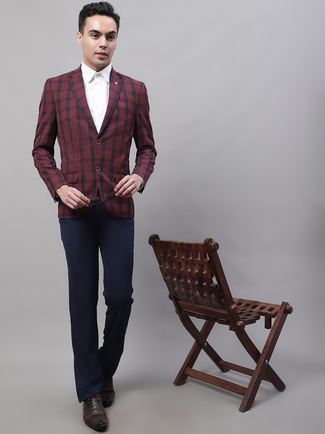 Blazer for Men | Premium Formal Blazer Slim Fit Notched Collar Poly Viscose Fabric Checkered Pattern