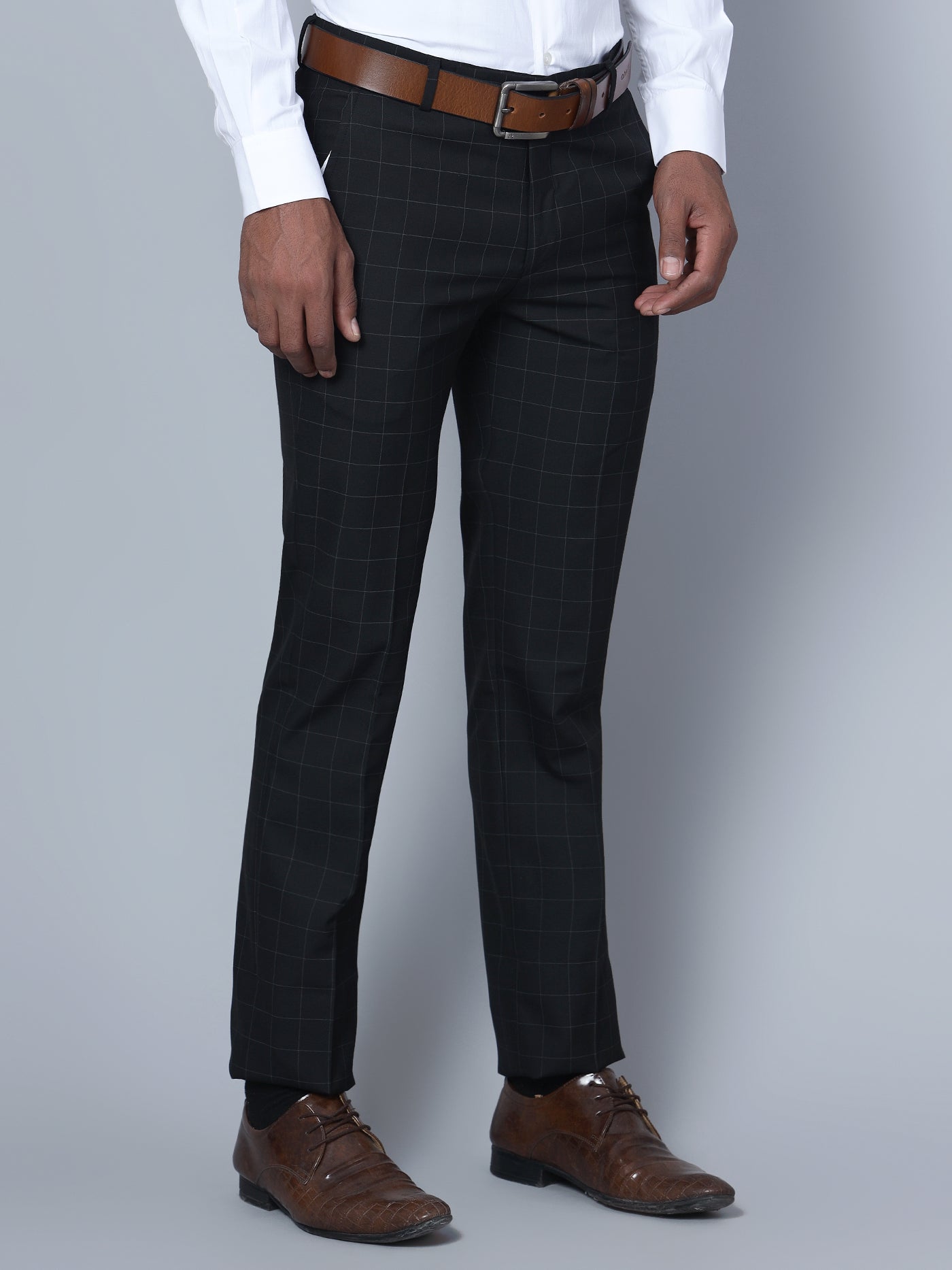 Formal Trouser for Men | Breathable & Soft with Color Fastness Regular Fit Lycra Fabric Checkered Pattern Hook & Eye Closure