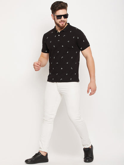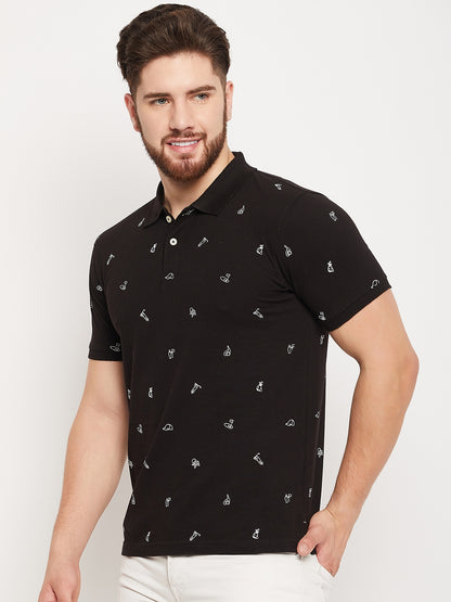 T-Shirt for Men | Breathable & Soft with Color Fastness Regular Fit Polo Neck Poly Cotton Fabric Printed Pattern