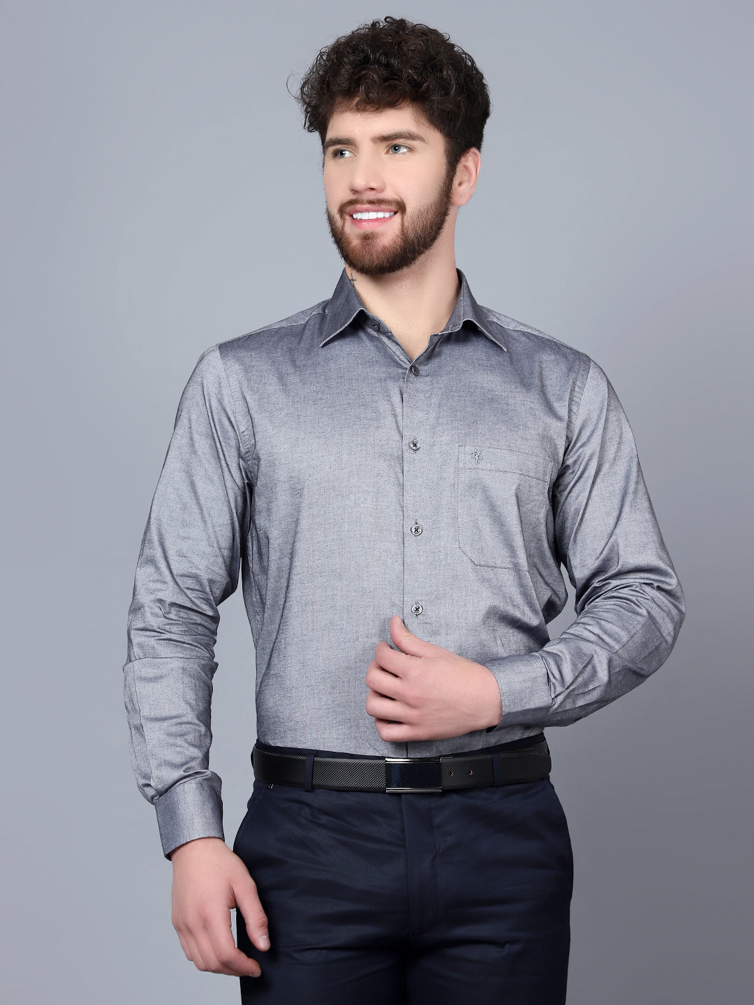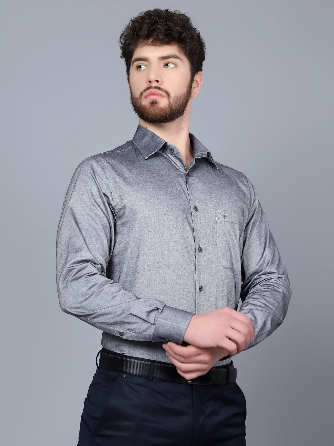 Men's Charcoal Grey Formal Plain Full Sleeve Shirt