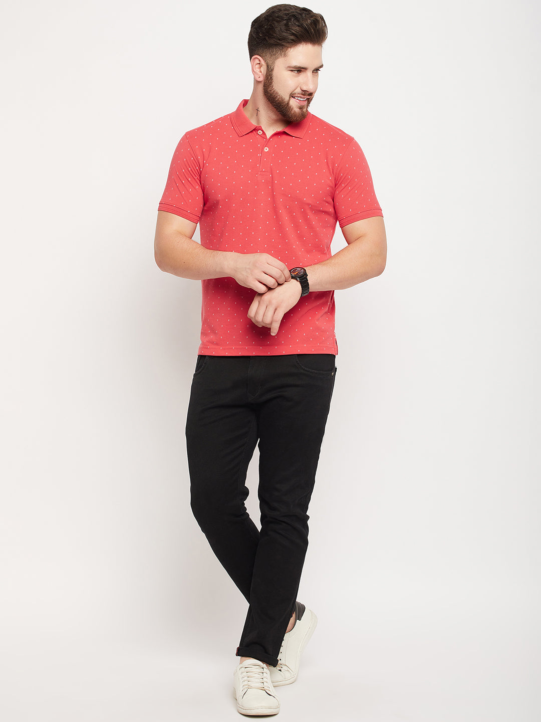 T-Shirt for Men | Breathable & Soft with Color Fastness Regular Fit Polo Neck Poly Cotton Fabric Printed Pattern