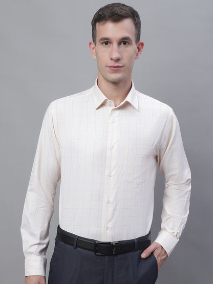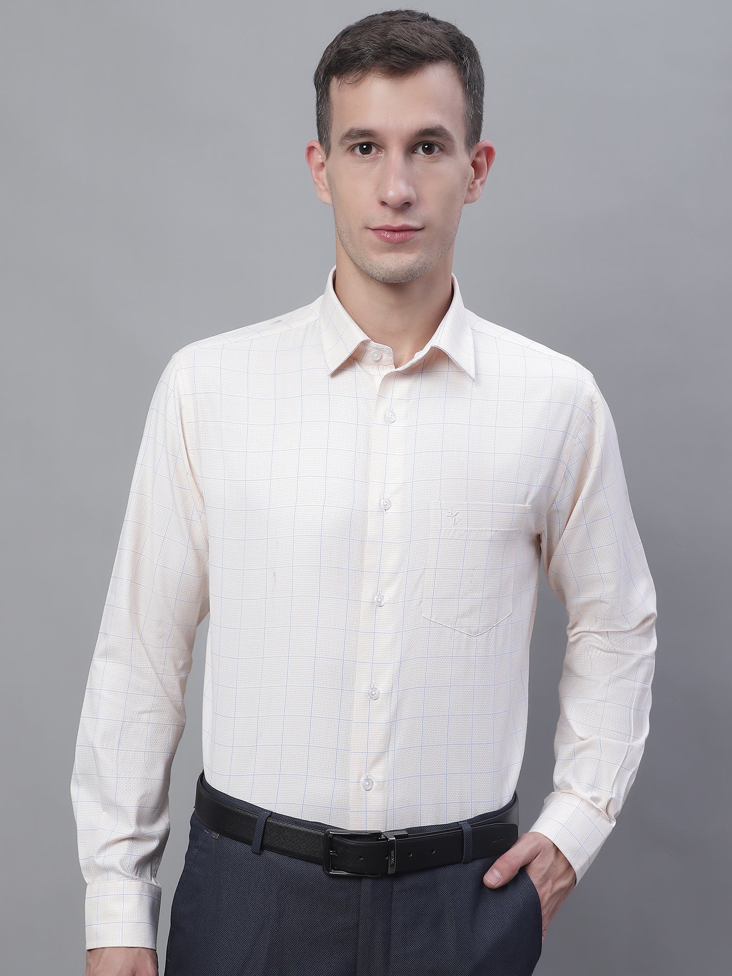 Men's Light Yellow Formal Medium Checks Textured Full Sleeve Shirt