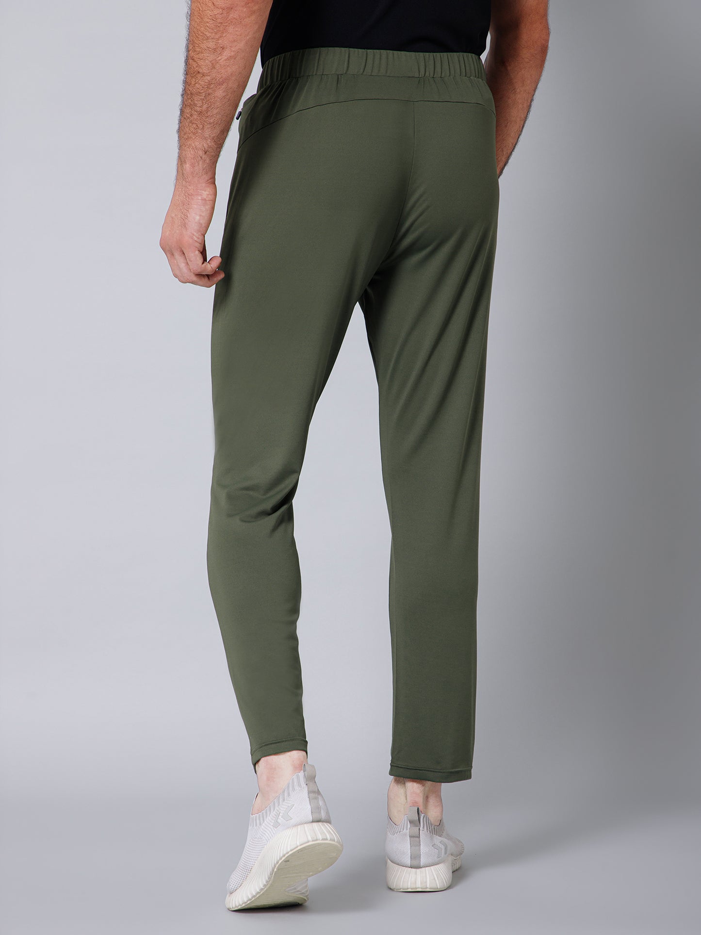 Men Green Solid Full Length Regular Fit Active Wear Track Pant