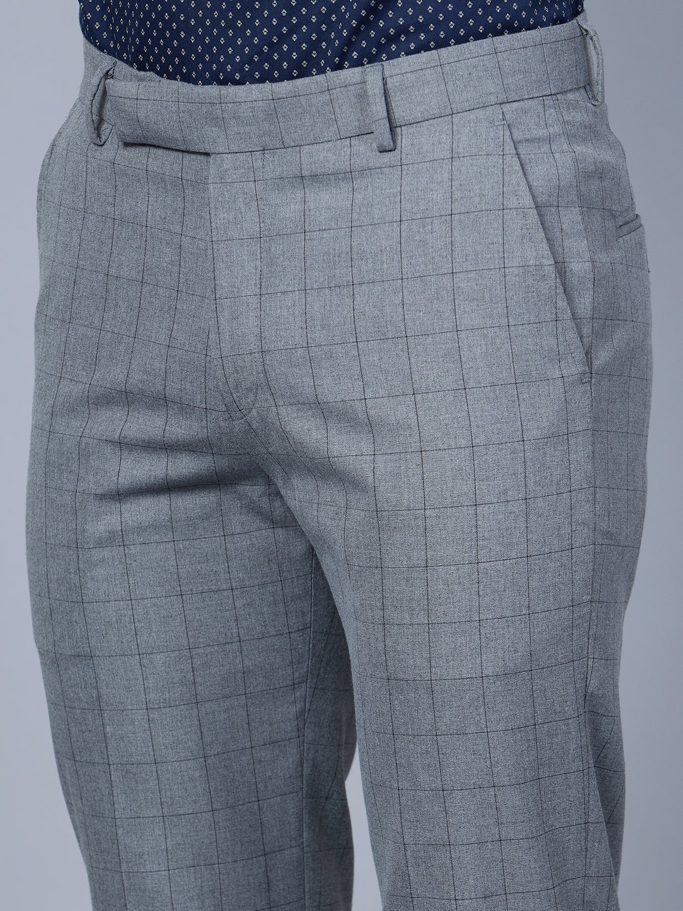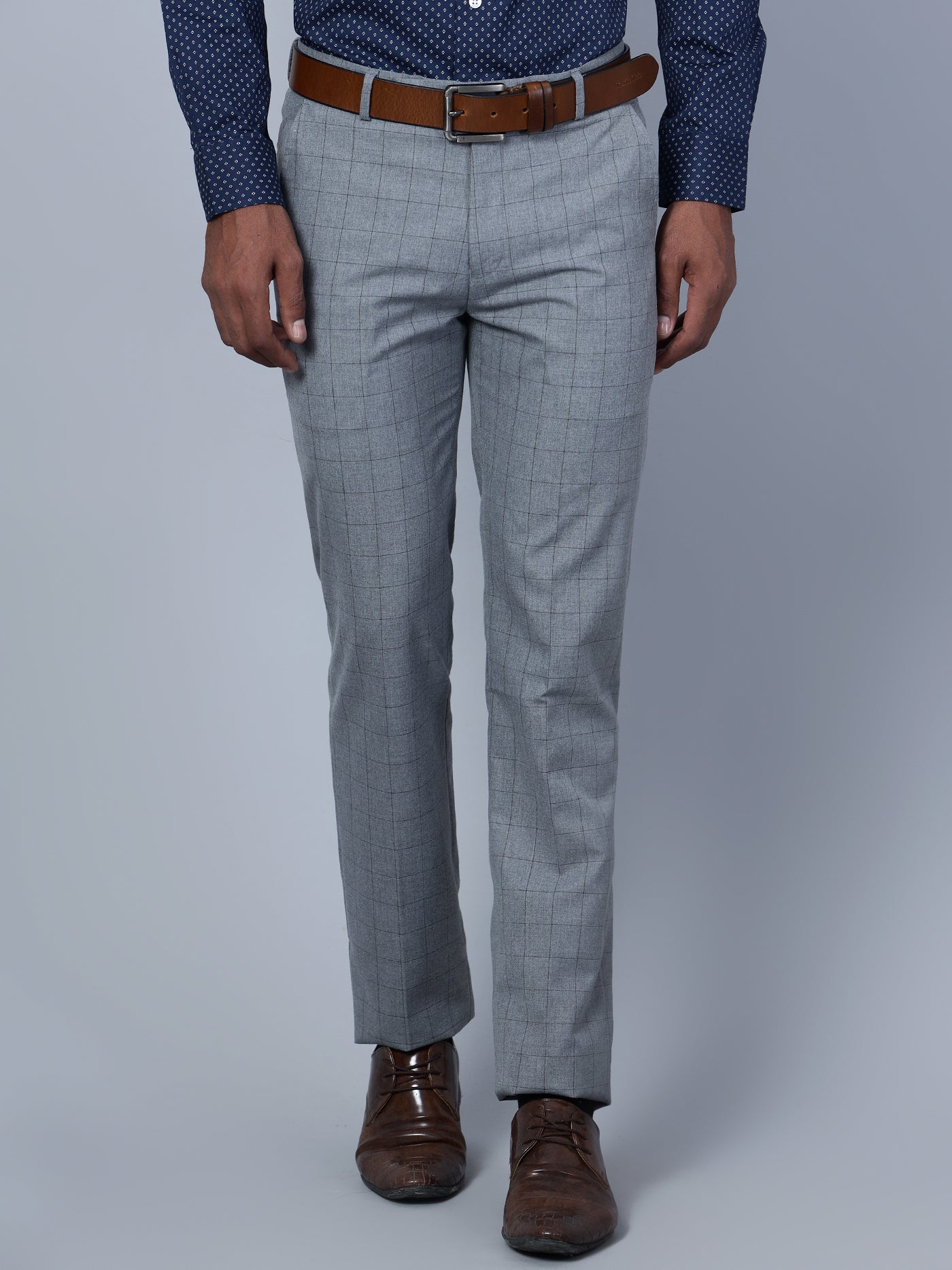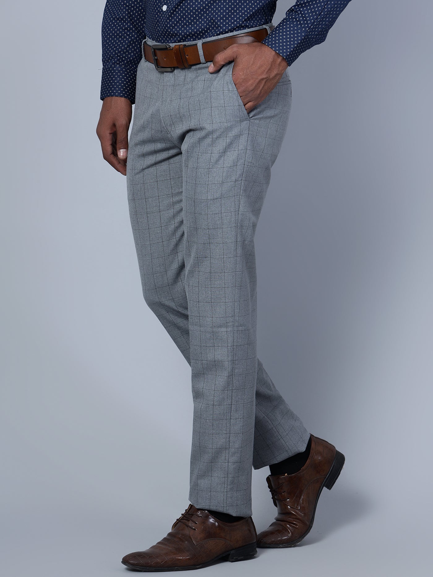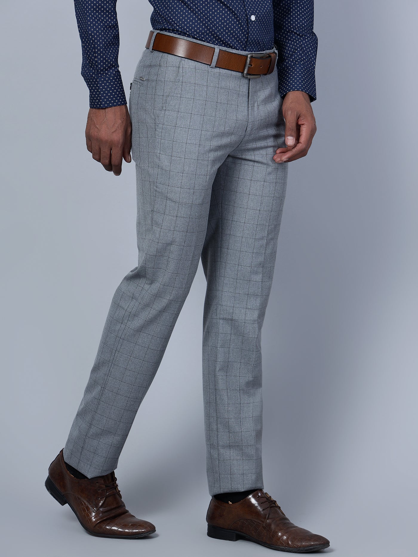 Formal Trouser for Men | Breathable & Soft with Color Fastness Regular Fit Lycra Fabric Checkered Pattern Hook & Eye Closure