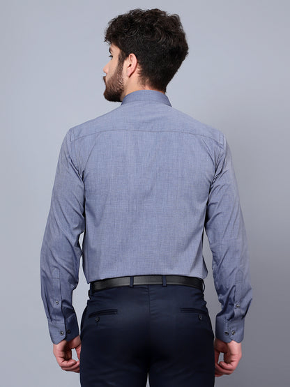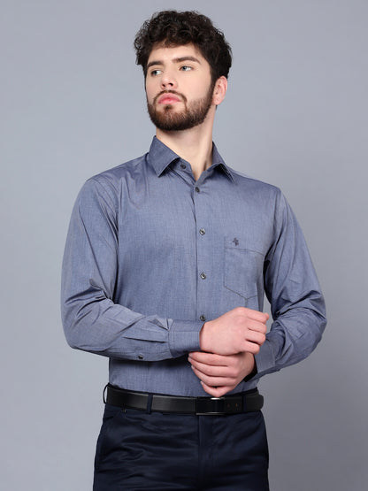 Men's Dark Grey Formal Fil a Fil Plain Full Sleeve Shirt