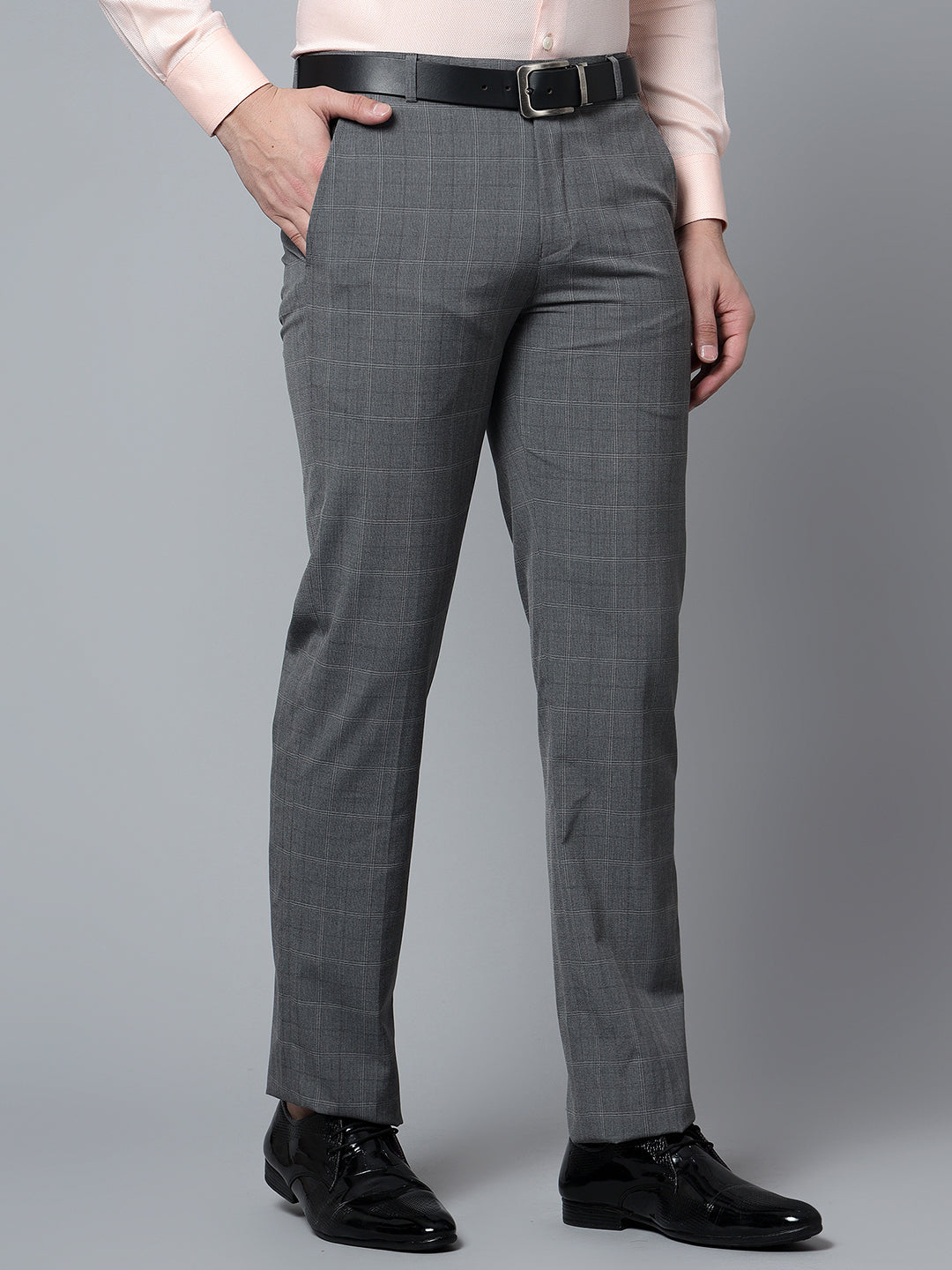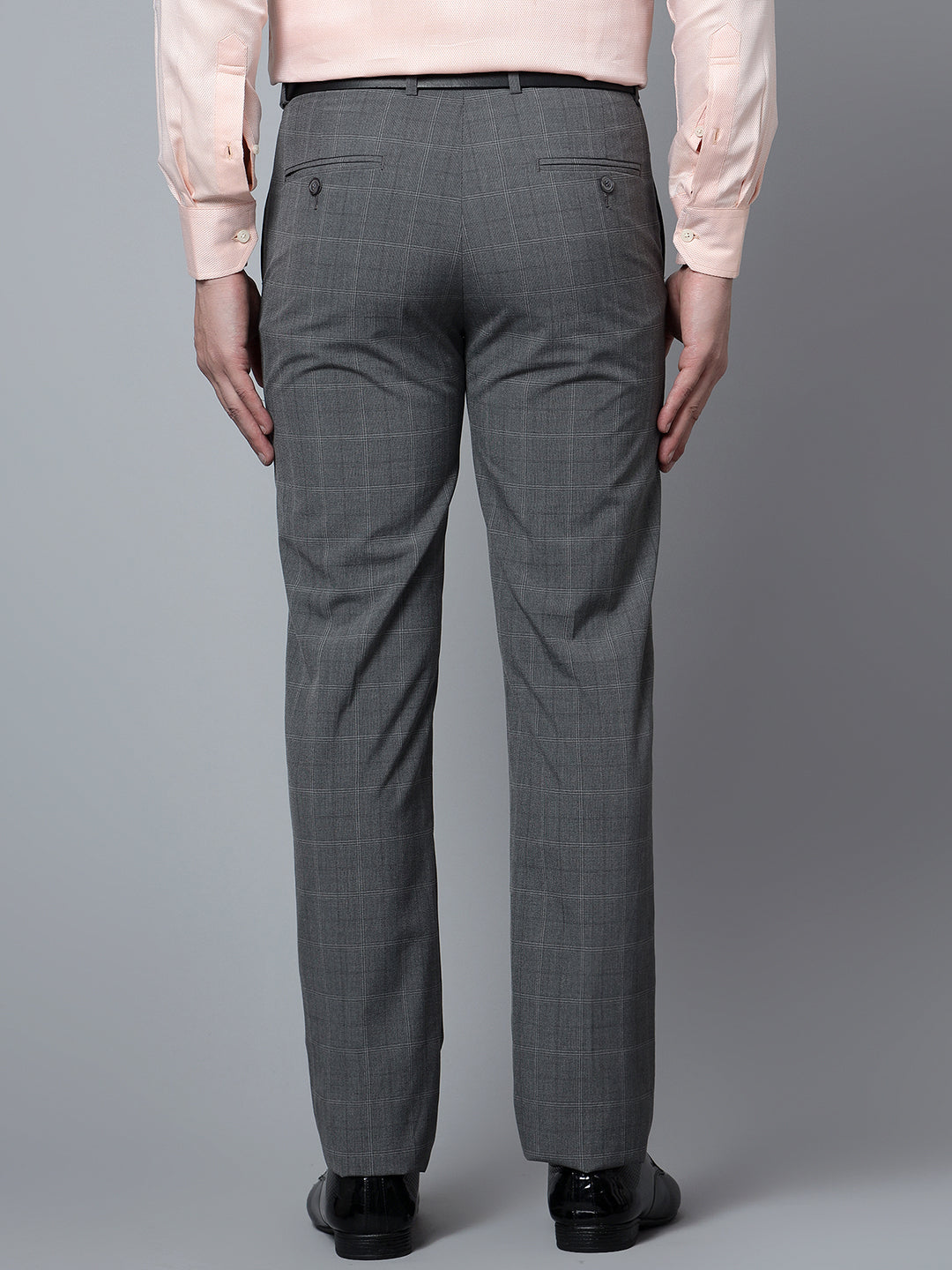 Formal Trouser for Men | Breathable & Soft with Color Fastness Regular Fit Poly Viscose Fabric Checkered Pattern Hook & Eye Closure