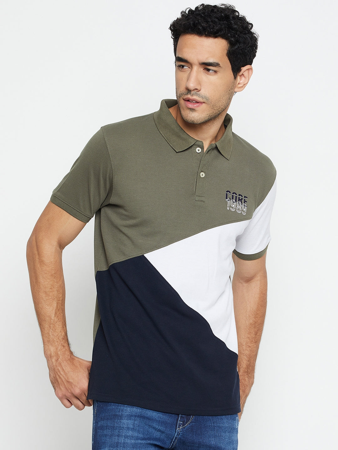 T-Shirt for Men | Breathable & Soft with Color Fastness Regular Fit Polo Neck Poly Cotton Fabric Colour Block Pattern