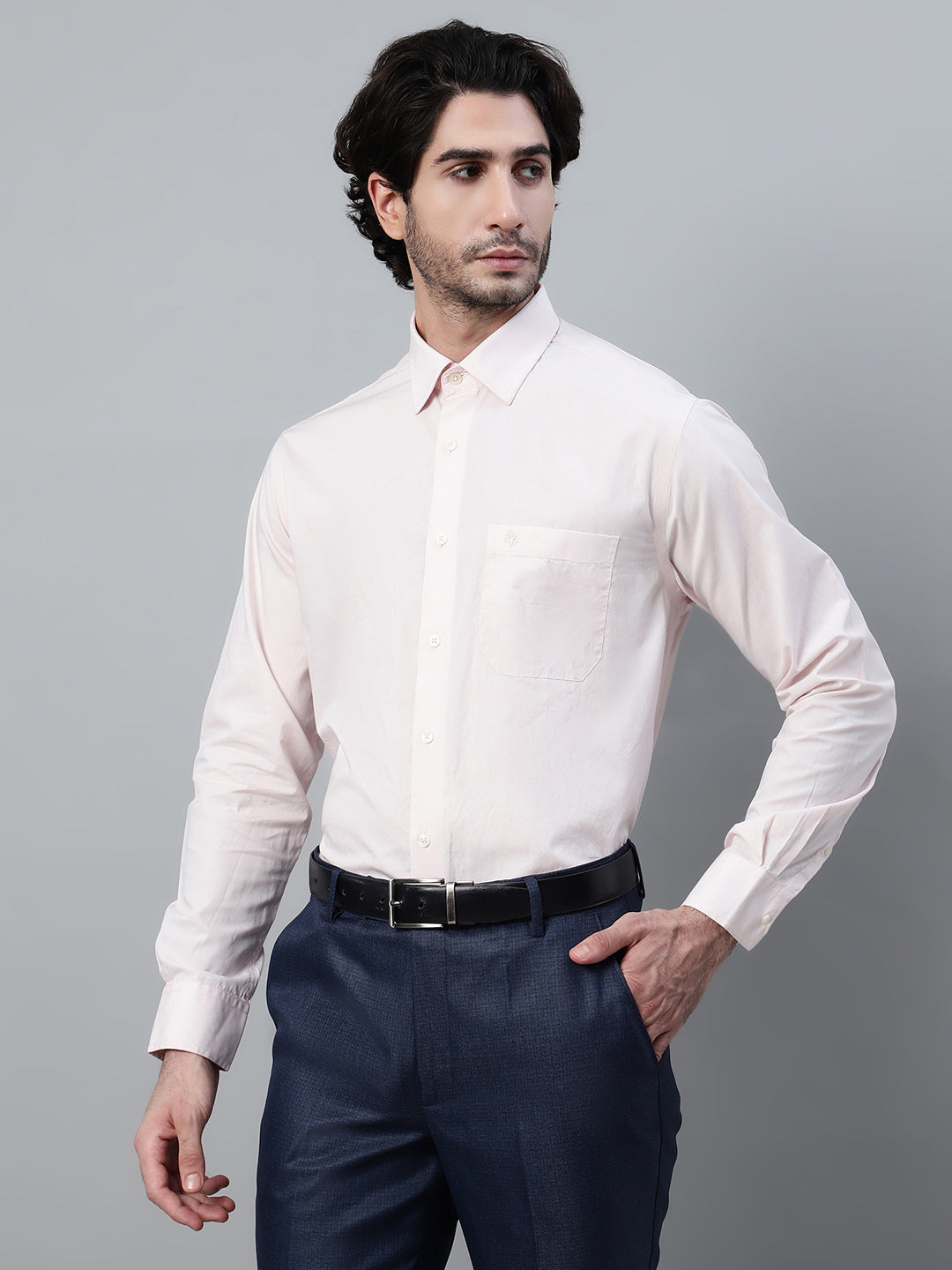 Men's Light Peach Formal Plain Full Sleeve Shirt