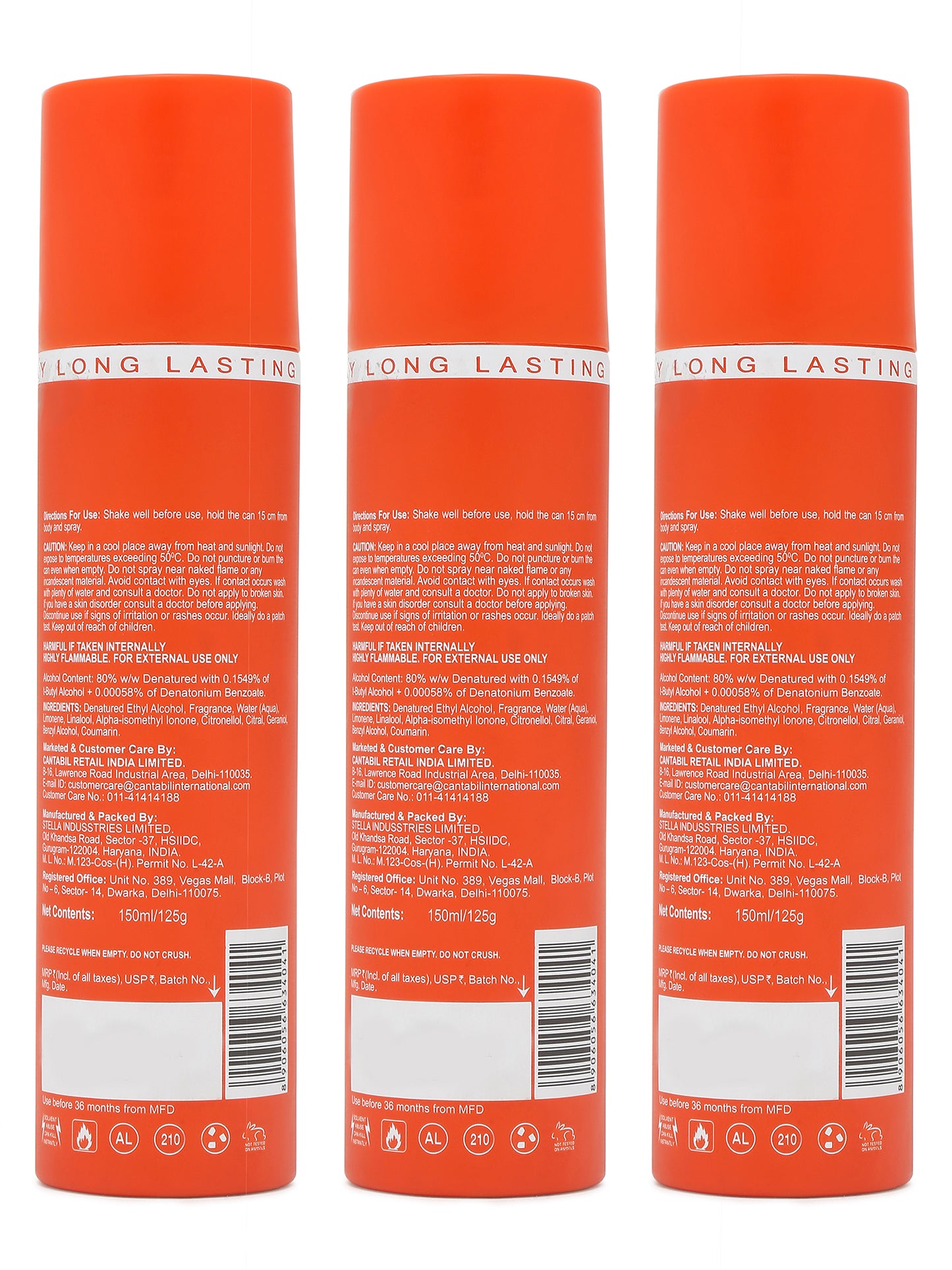 Unisex Fiery Glaze - Orange Deodrant - Pack of 3 ( 150 ml each )