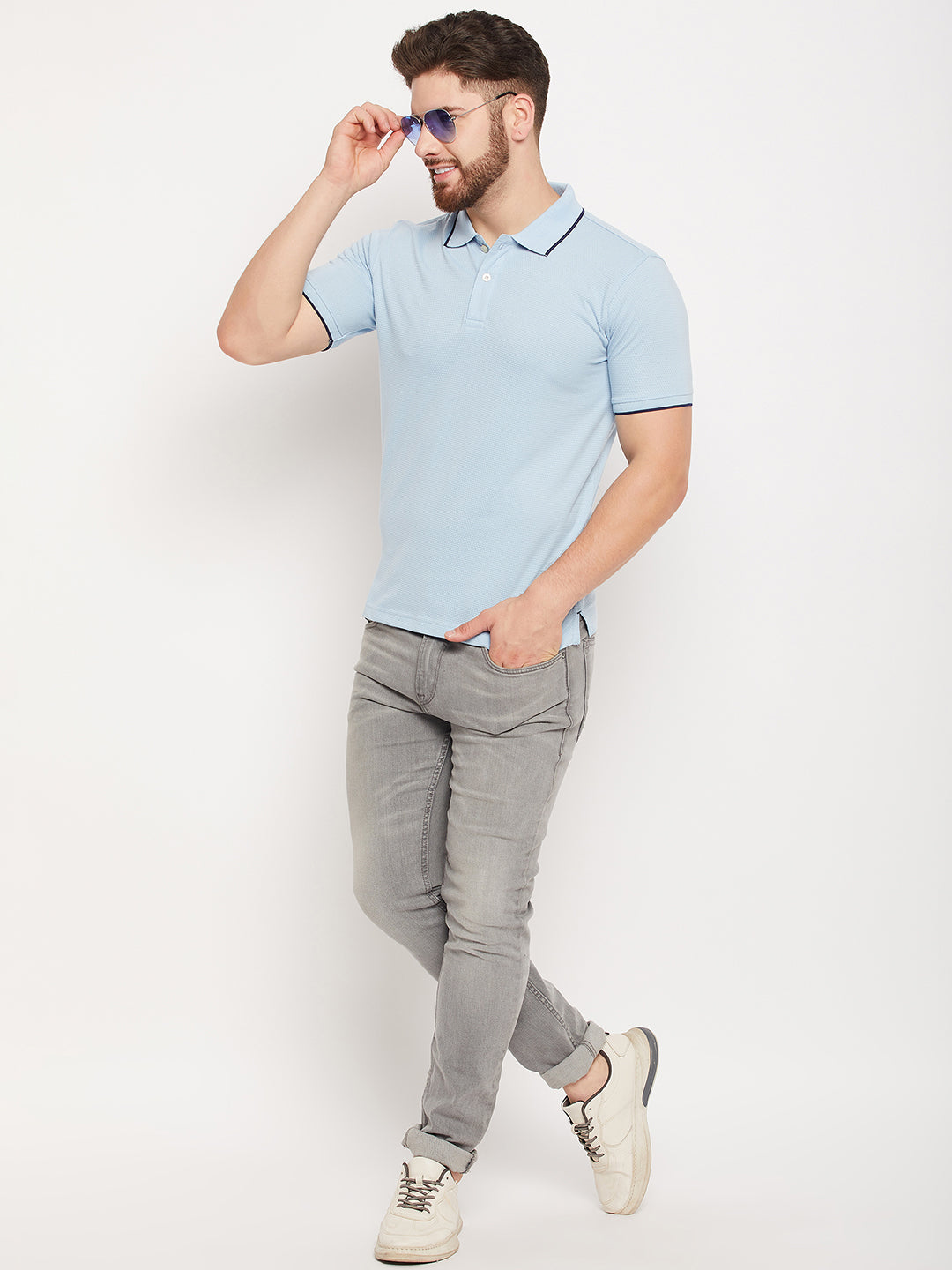T-Shirt for Men | Breathable & Soft with Color Fastness Regular Fit Polo Neck Cotton Fabric Solid Pattern