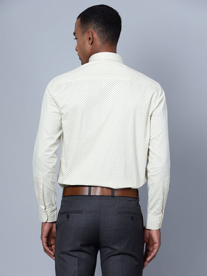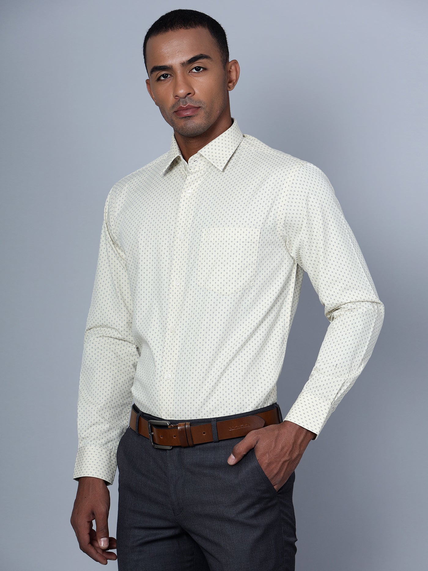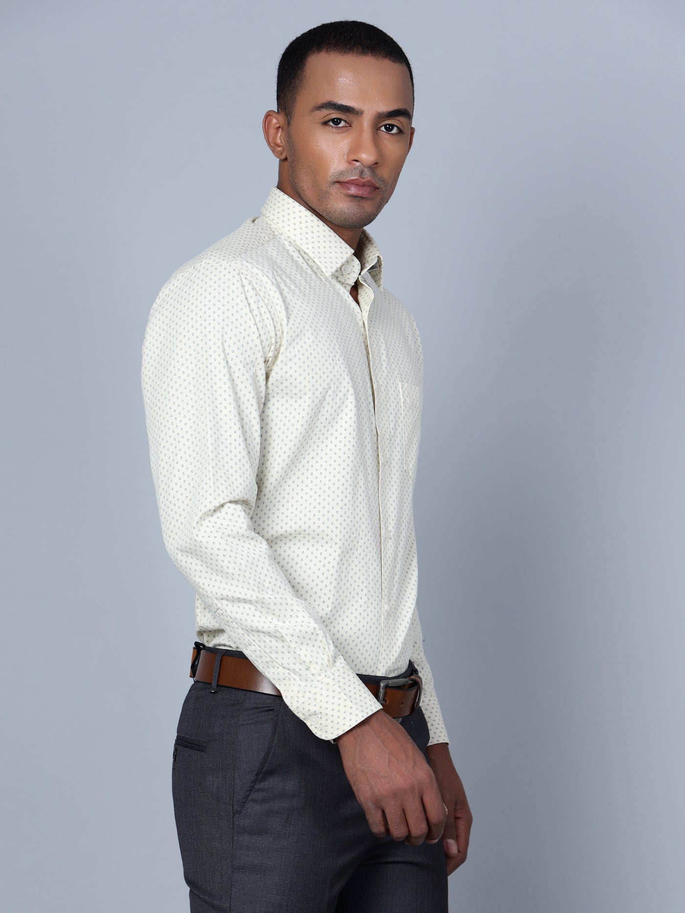 Men's Light Yellow Formal Geometric Ditsy print Full Sleeve Shirt