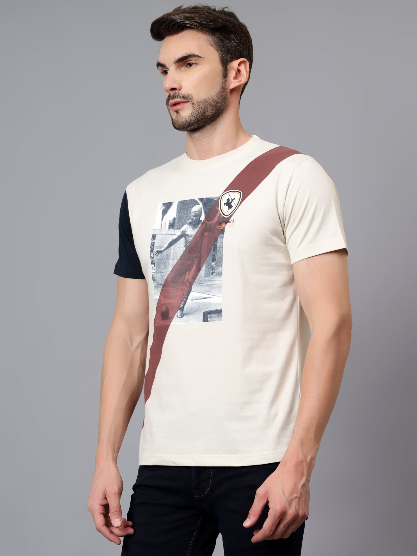 T-Shirt for Men | Breathable & Soft with Color Fastness Regular Fit Round Neck Poly Cotton Fabric Printed Pattern