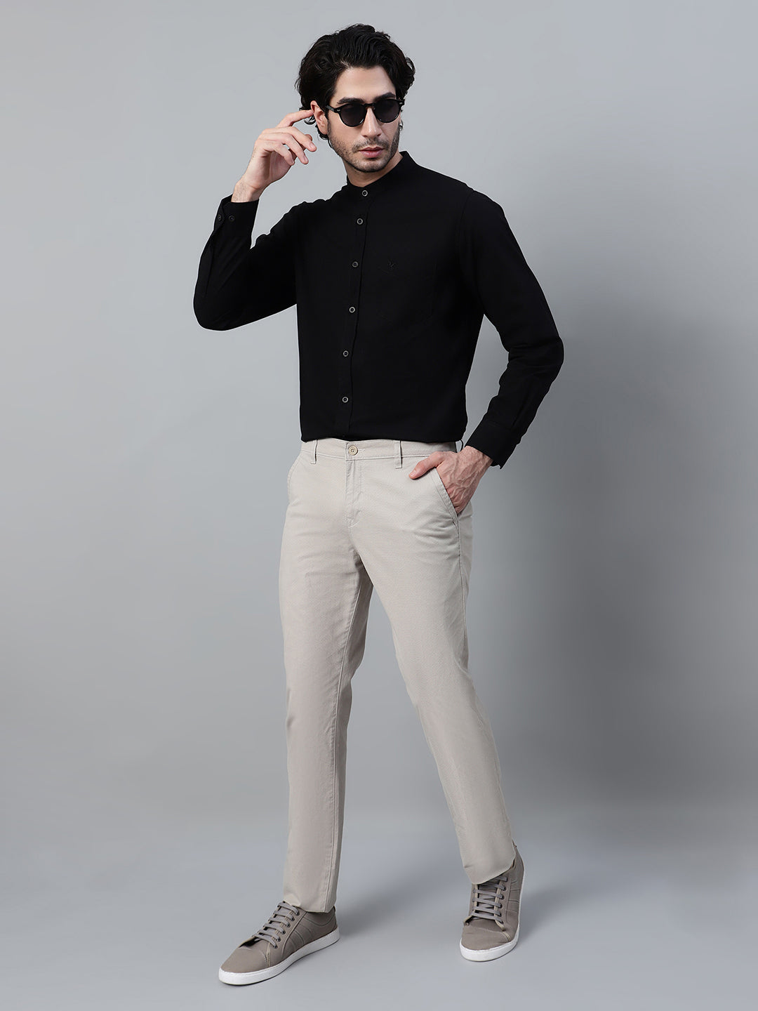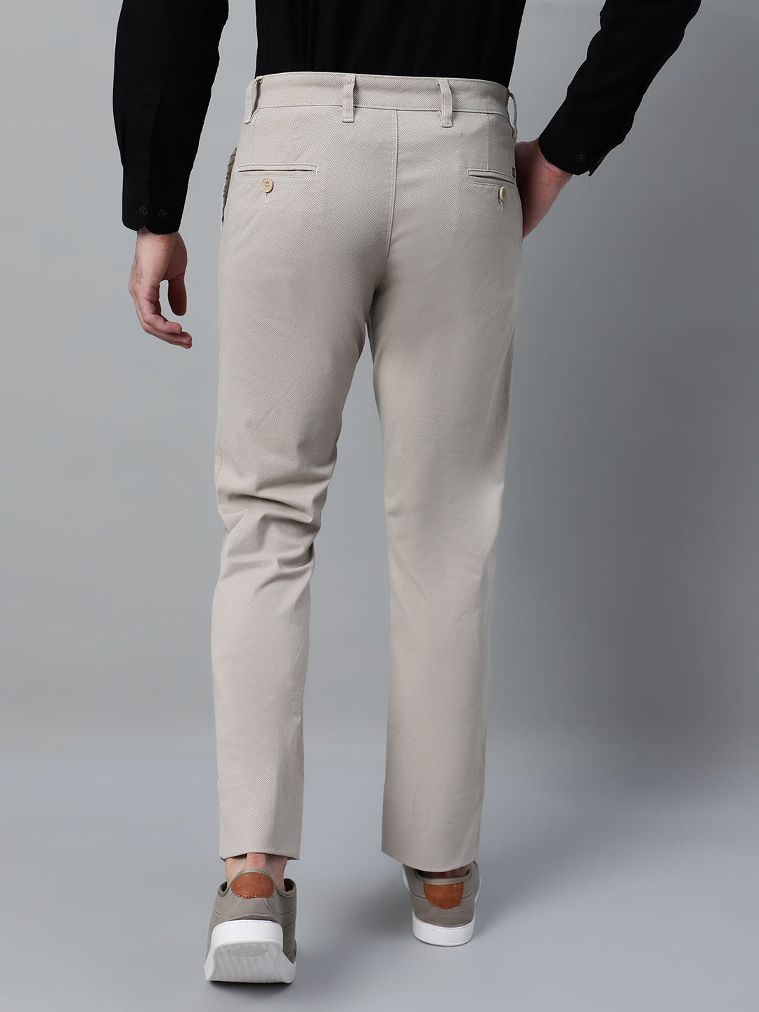 Men's Beige Self Design Non-Pleated Casual Trouser