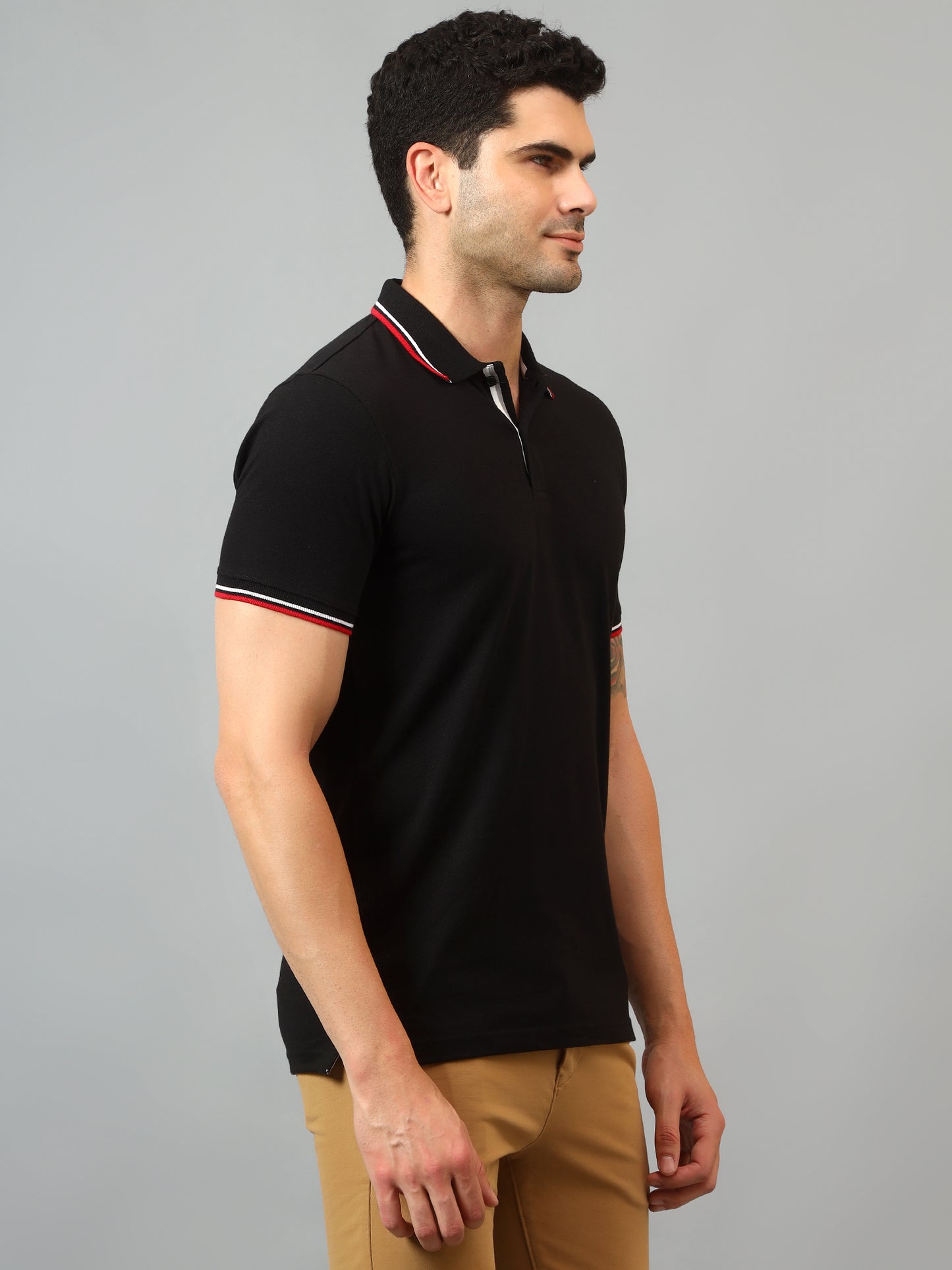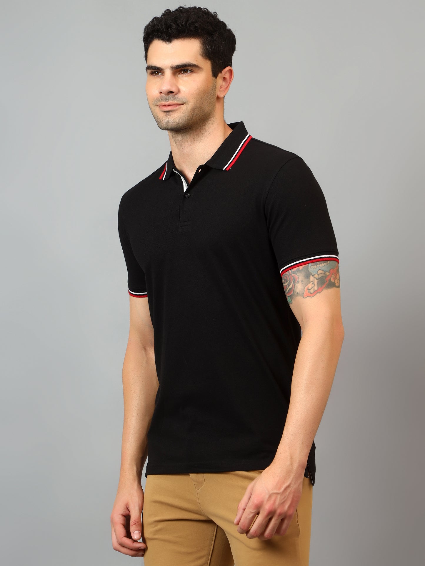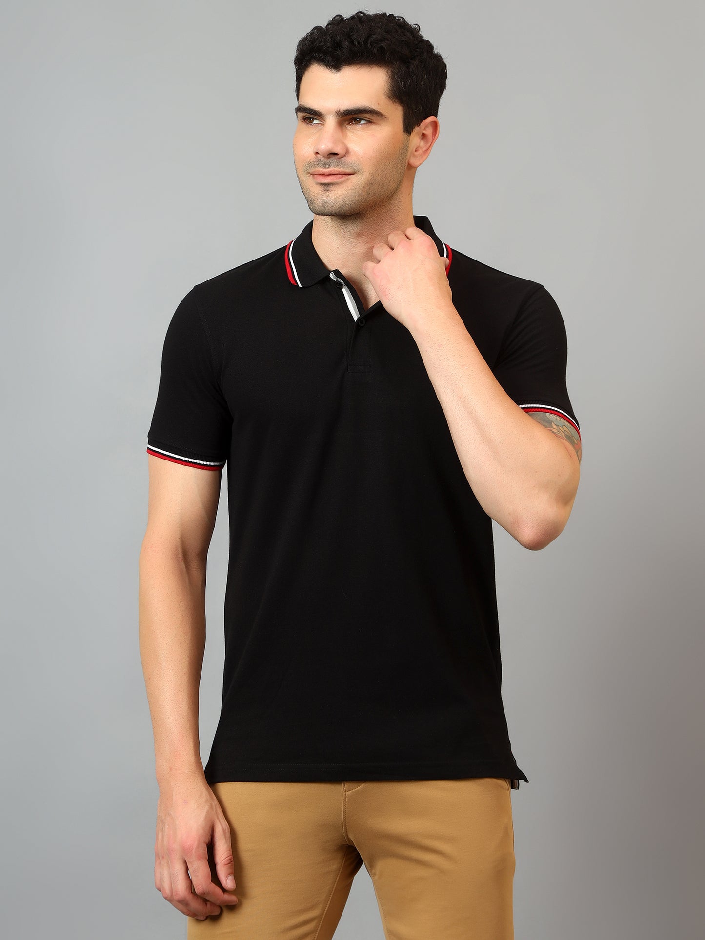 T-Shirt for Men | Breathable & Soft with Color Fastness Regular Fit Polo Neck Poly Cotton Fabric Solid Pattern