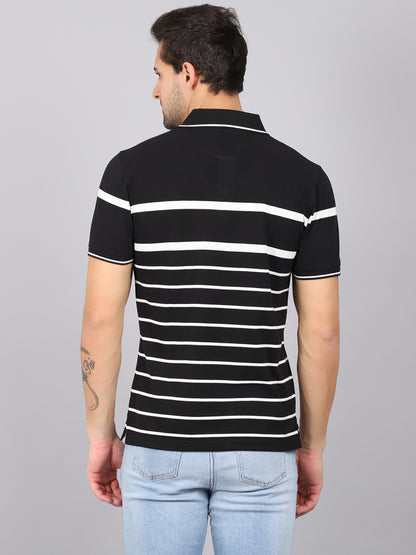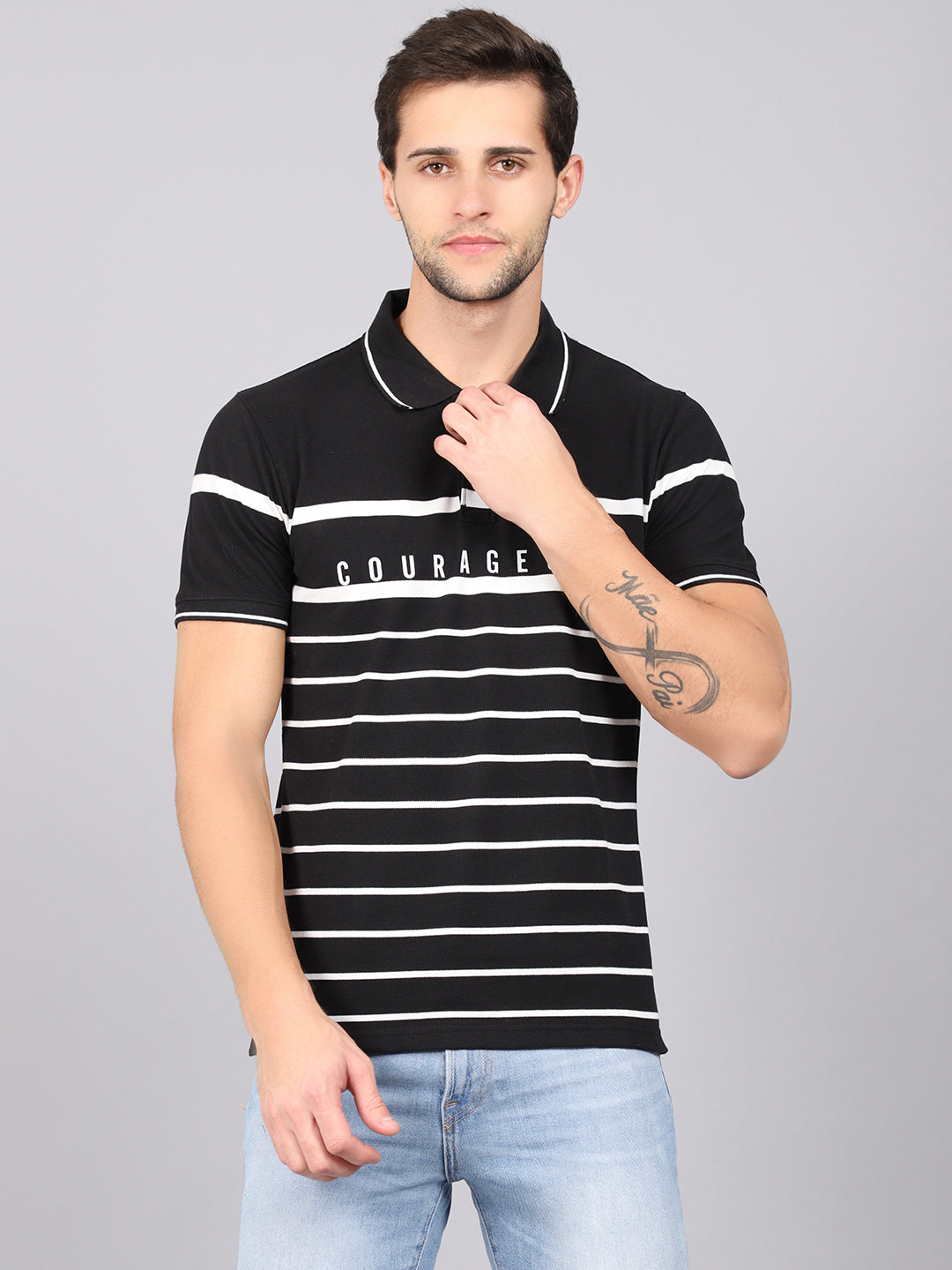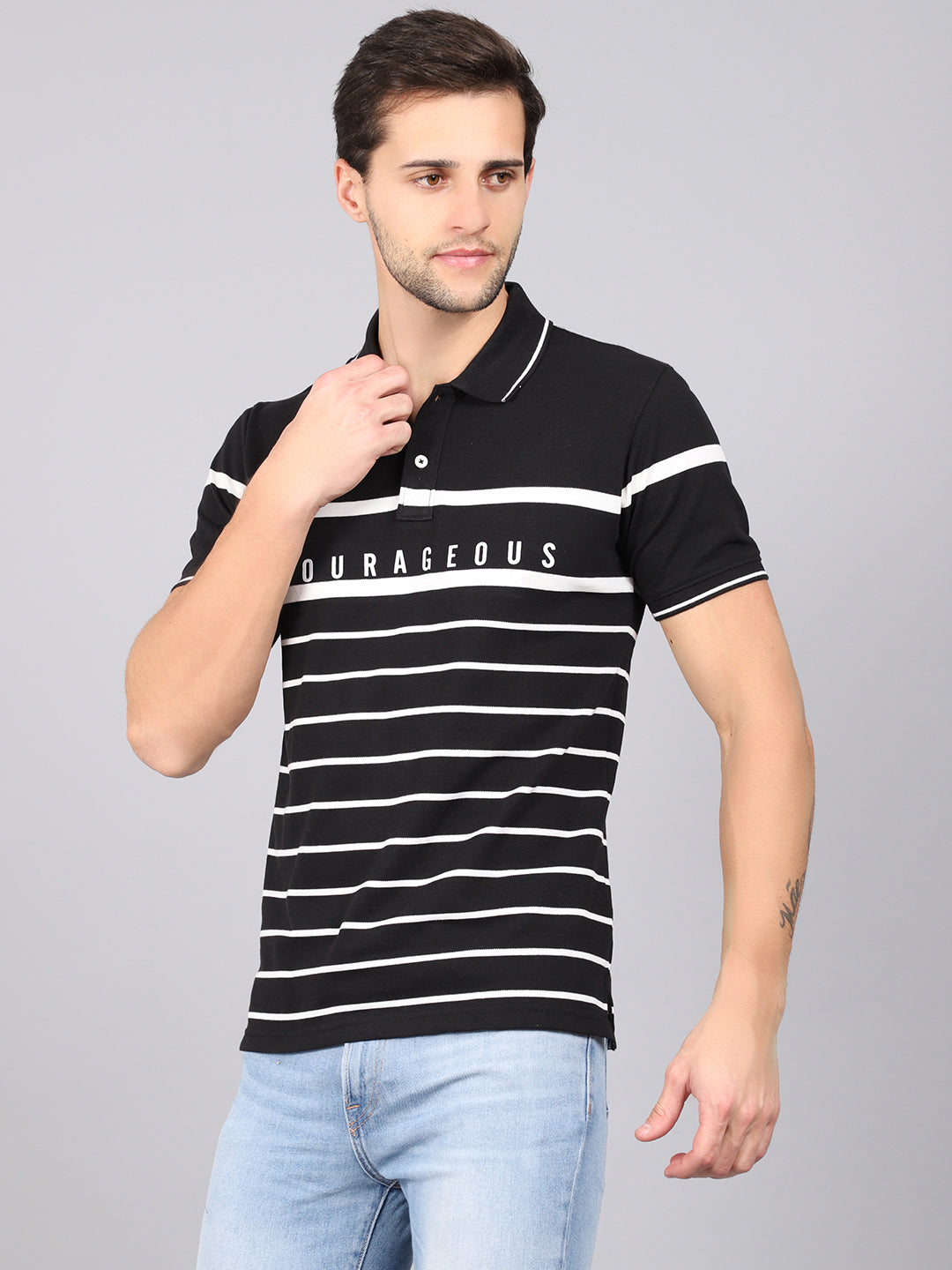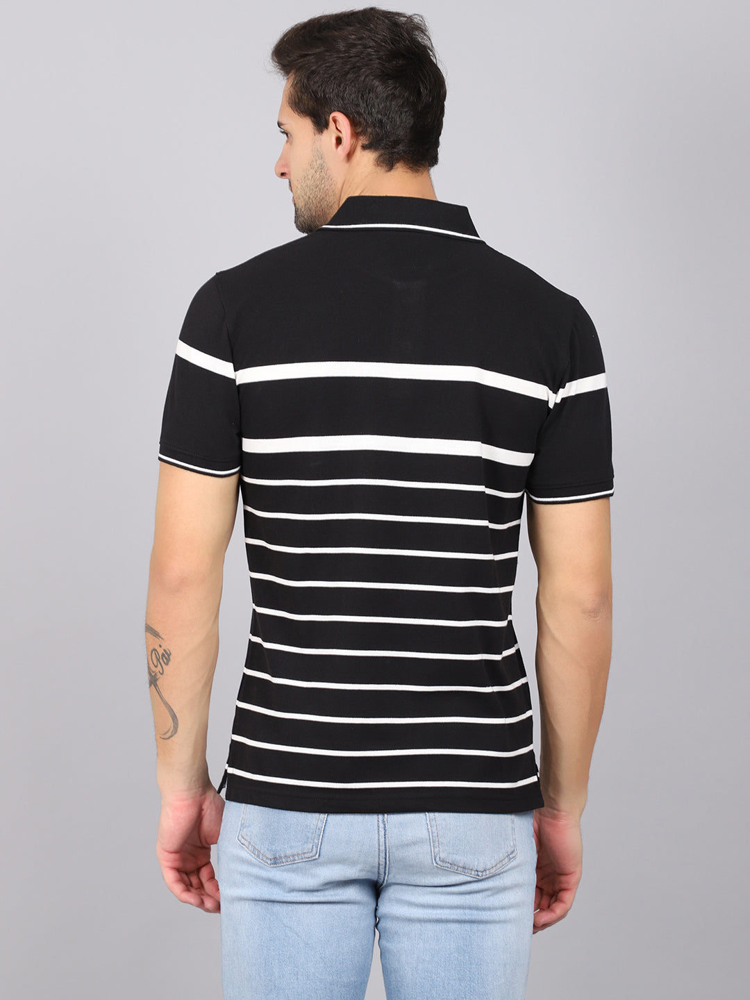 T-Shirt for Men | Breathable & Soft with Color Fastness Regular Fit Polo Neck Poly Cotton Fabric Striped Pattern