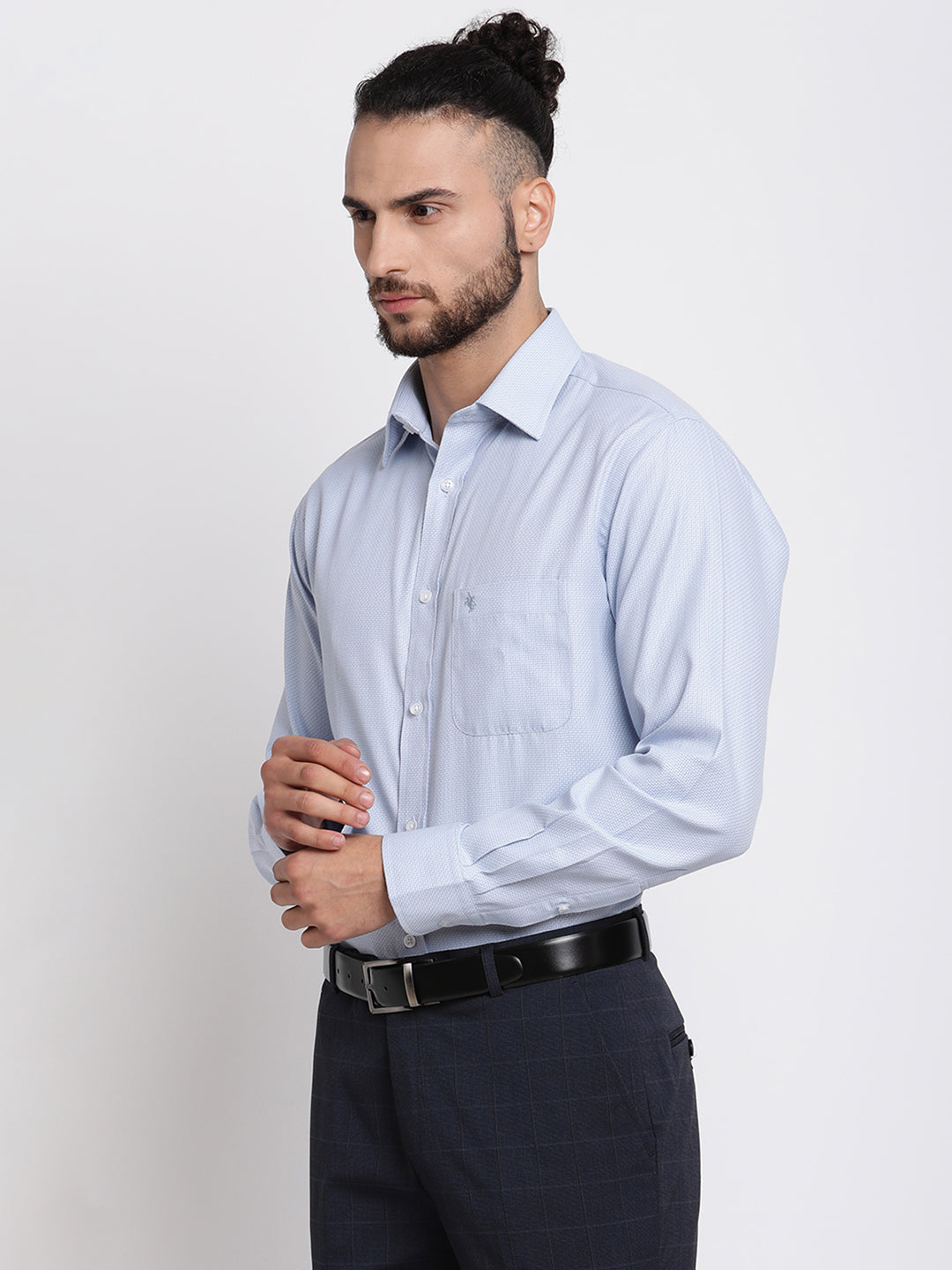 Men's Sky Blue Formal Self Textured Full Sleeve Shirt