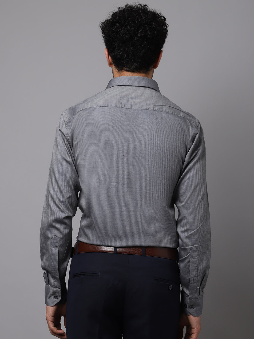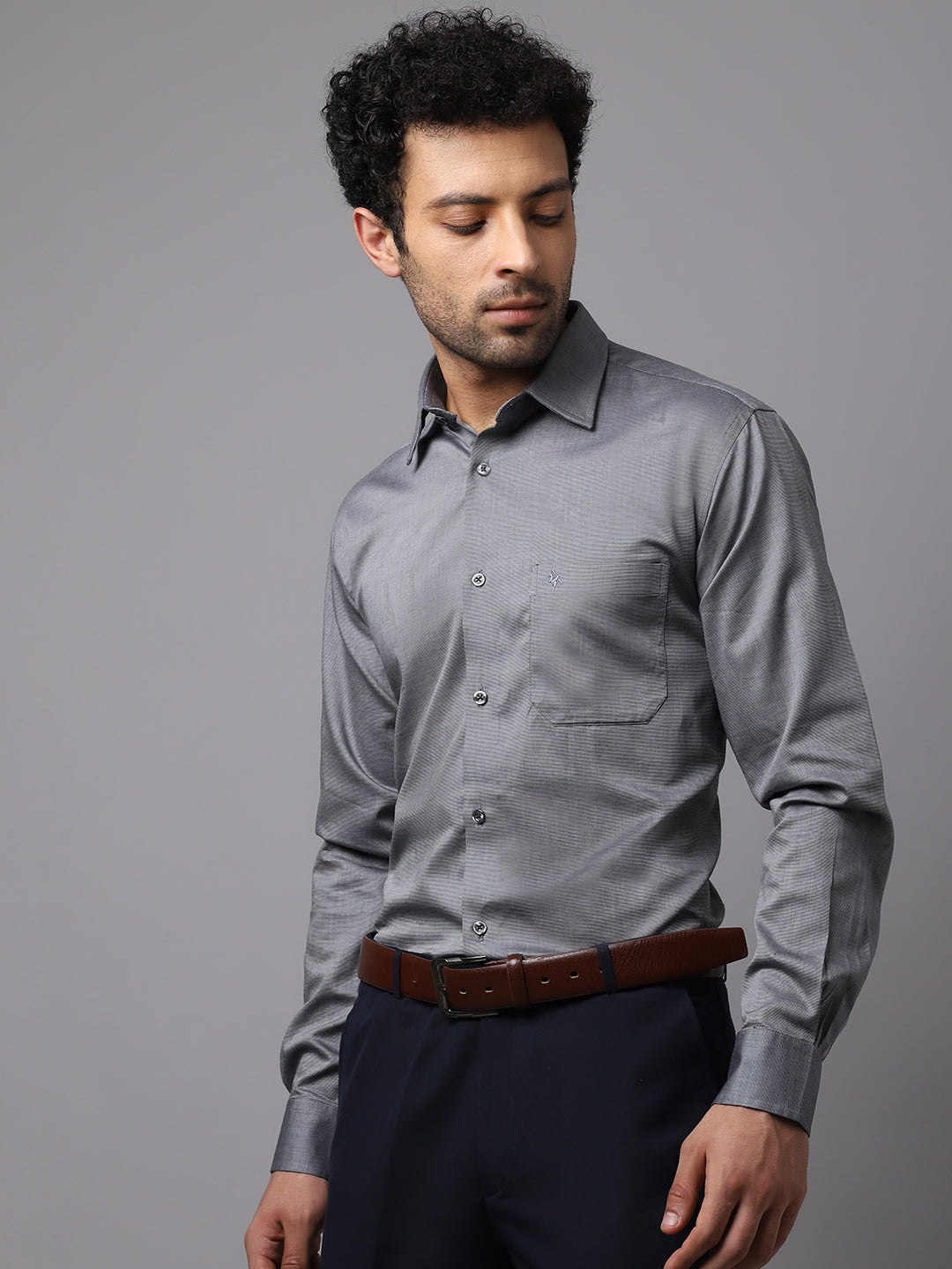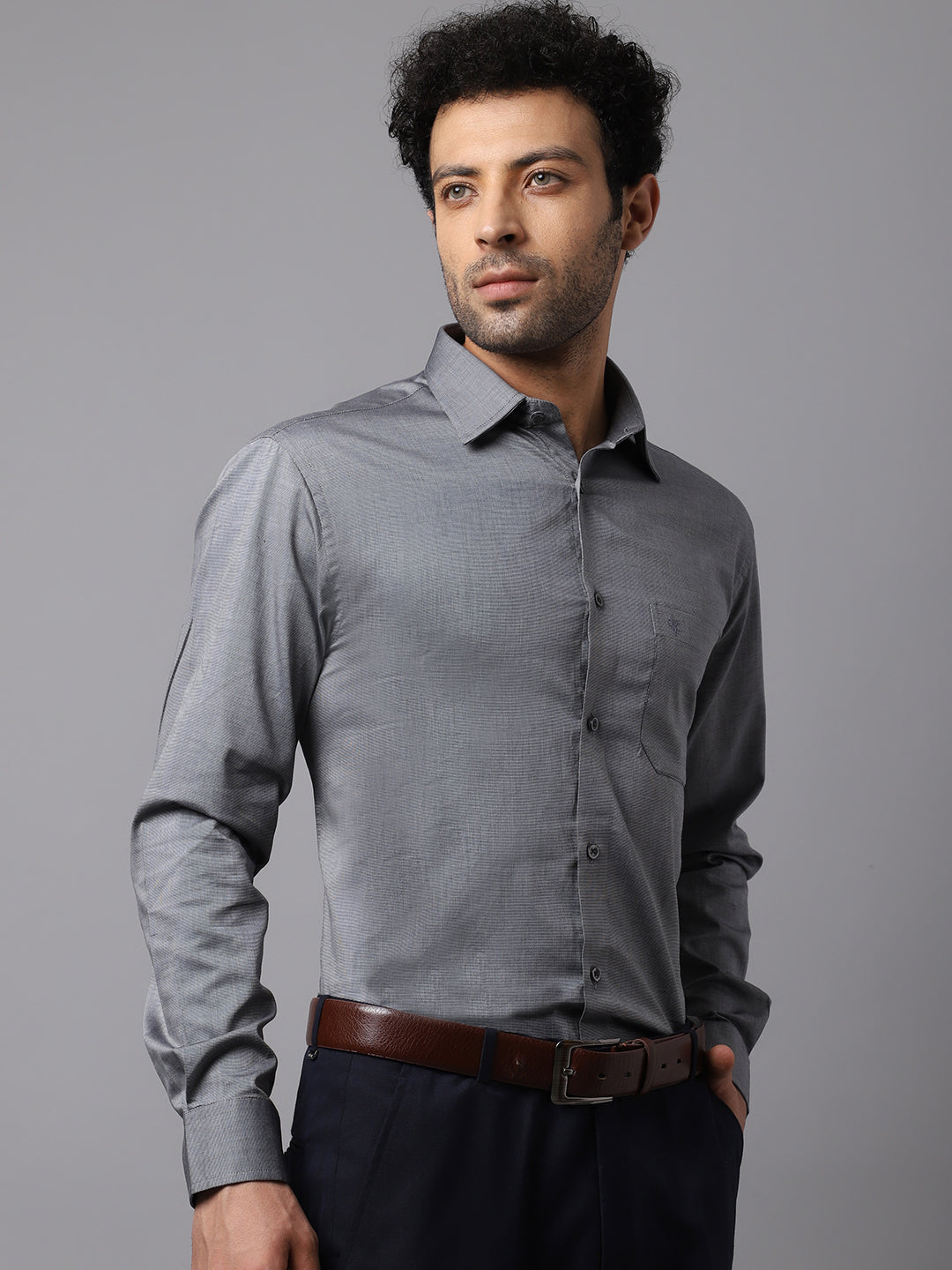 Men's Dark Grey Formal Fil a Fil Plain Full Sleeve Shirt