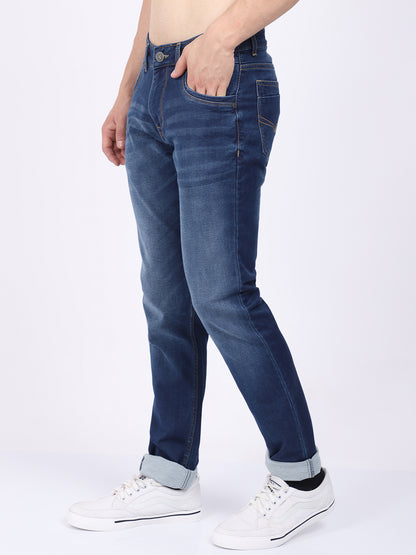 Denim Jeans for Men l Breathable & Soft with Color Fastness Ultra Narrow Fit Cotton Fabric Solid Pattern Button Closure