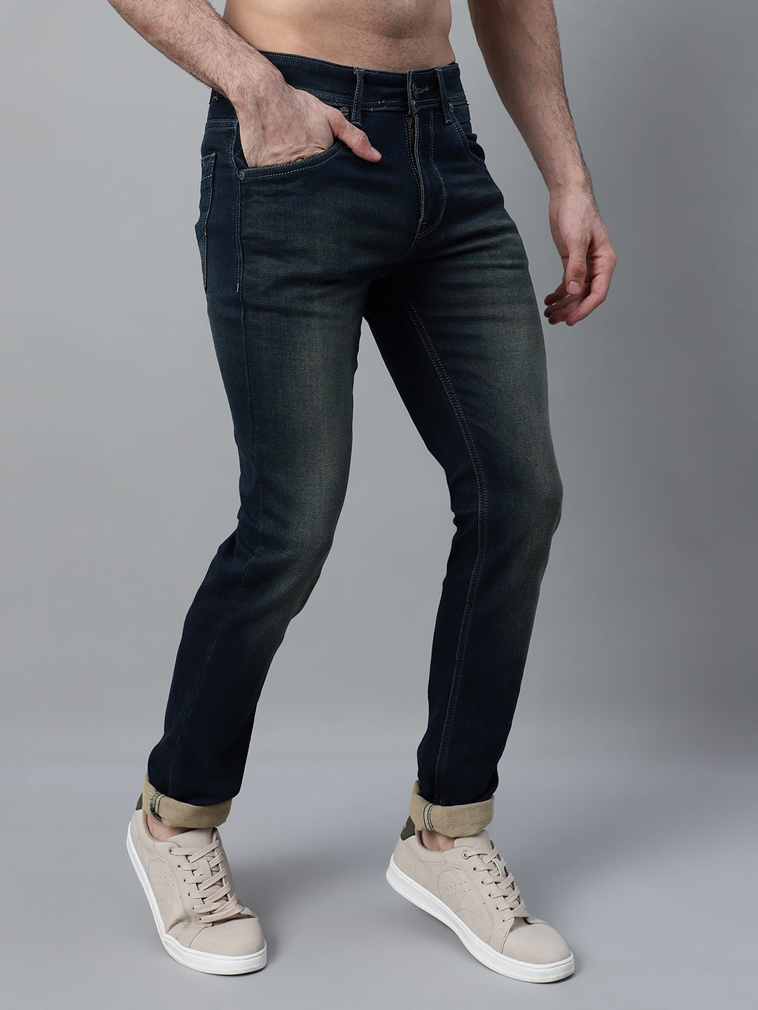 Denim Jeans for Men l Breathable & Soft with Color Fastness Ultra Narrow Fit Cotton Fabric Solid Pattern Button Closure