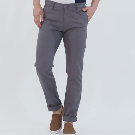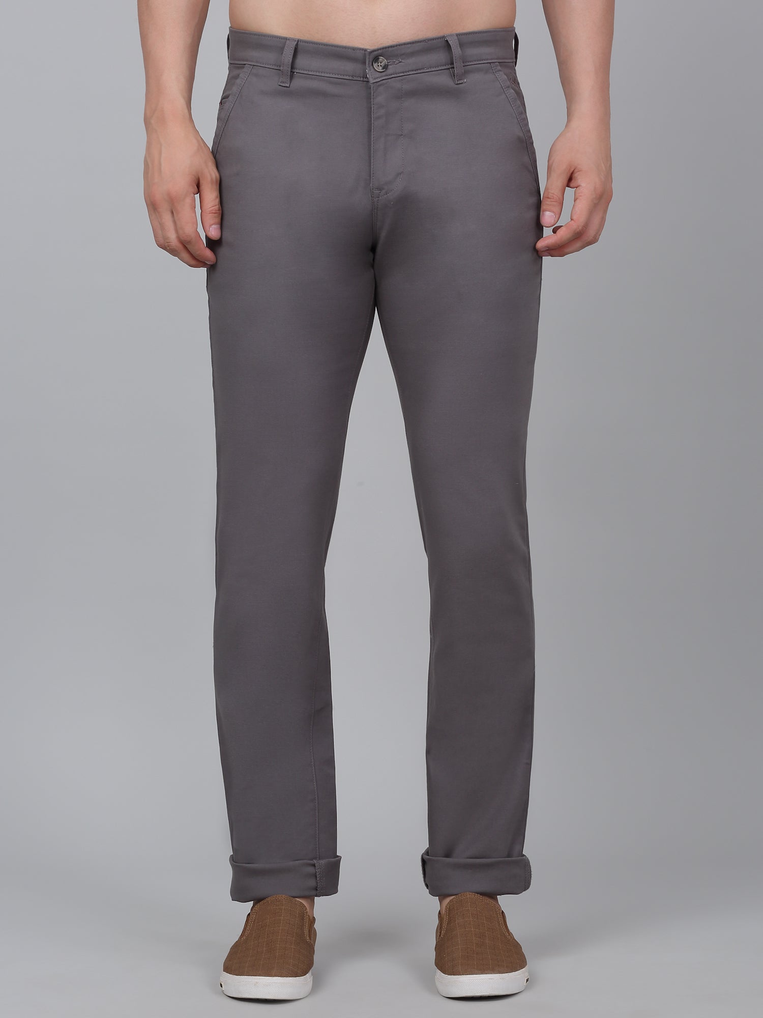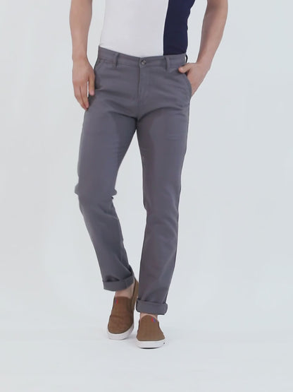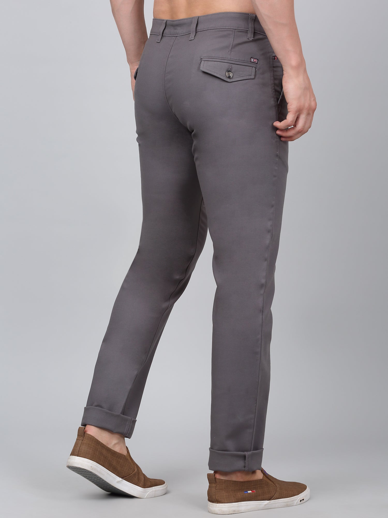 Men's Grey Solid Non-Pleated Stretchable Casual Trouser