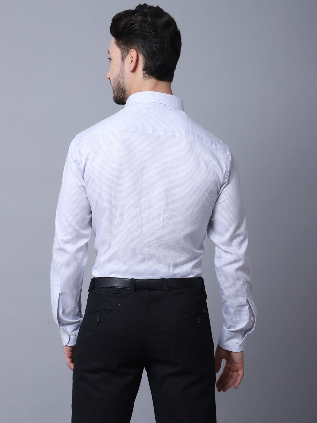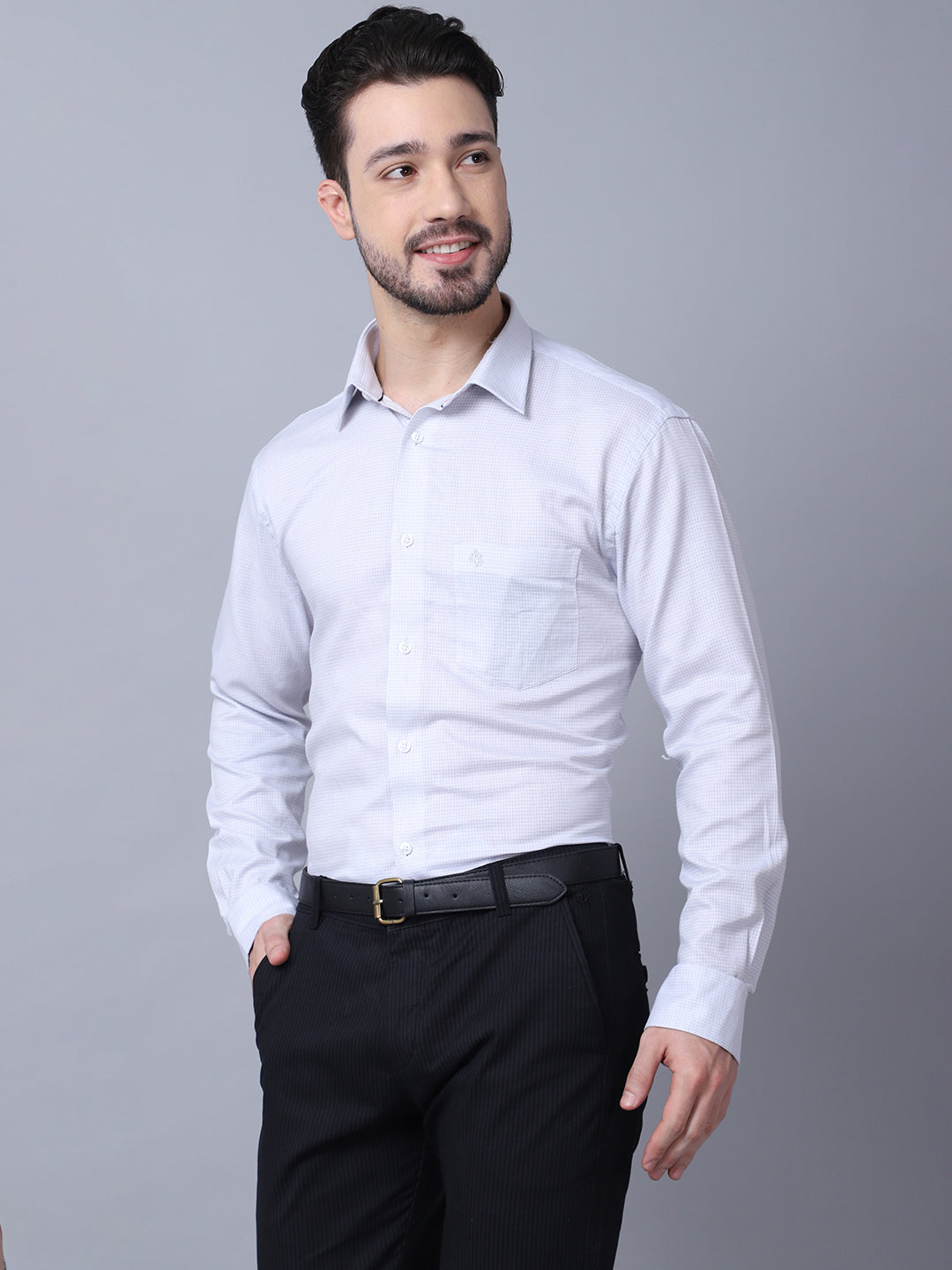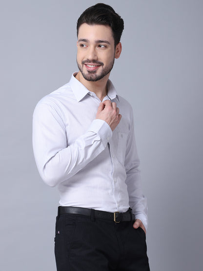 Men's Light Grey Formal Self textured Full Sleeve Shirt