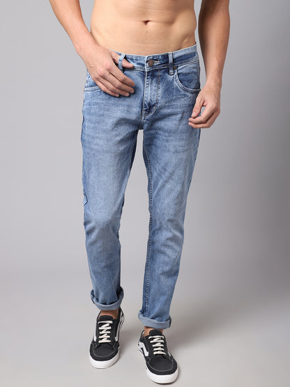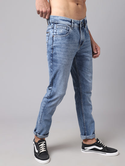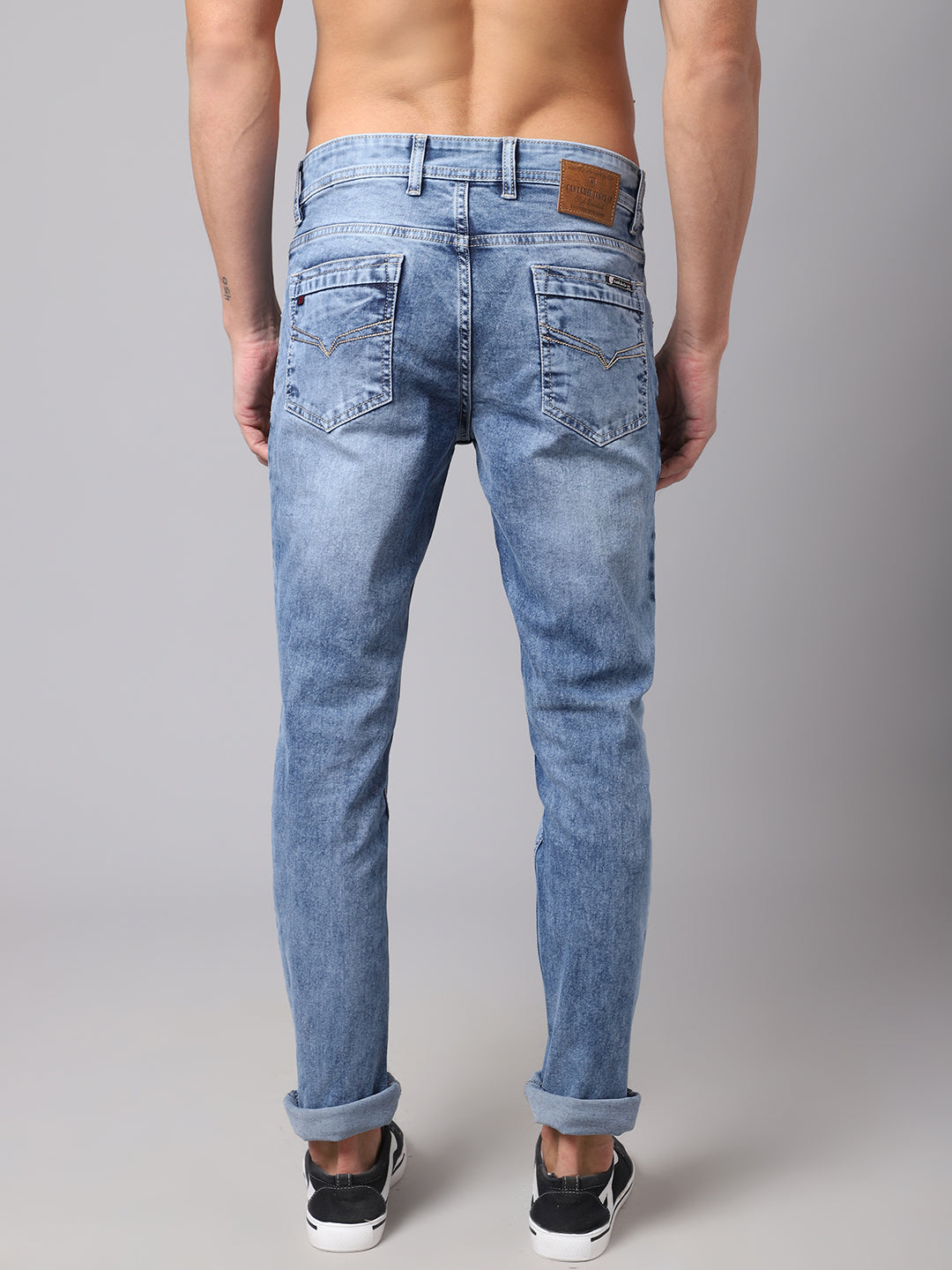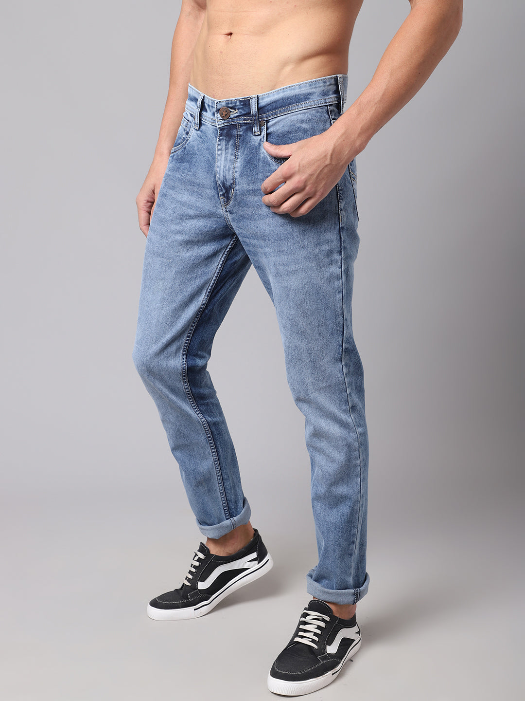 Denim Jeans for Men l Breathable & Soft with Color Fastness Ultra Narrow Fit Cotton Fabric Solid Pattern Button Closure