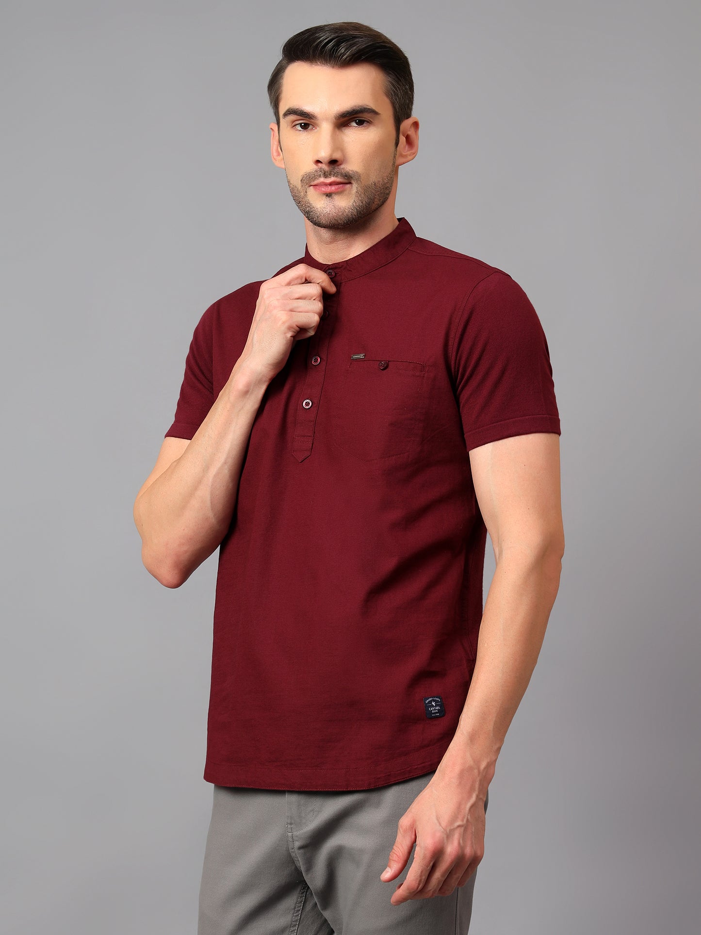 Men's Maroon Casual Plain Half sleeve Shirt Kurta