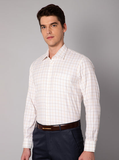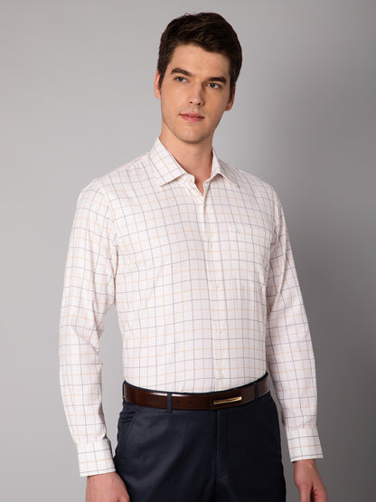 Men's Mustard Formal Medium Checks Full Sleeve Shirt