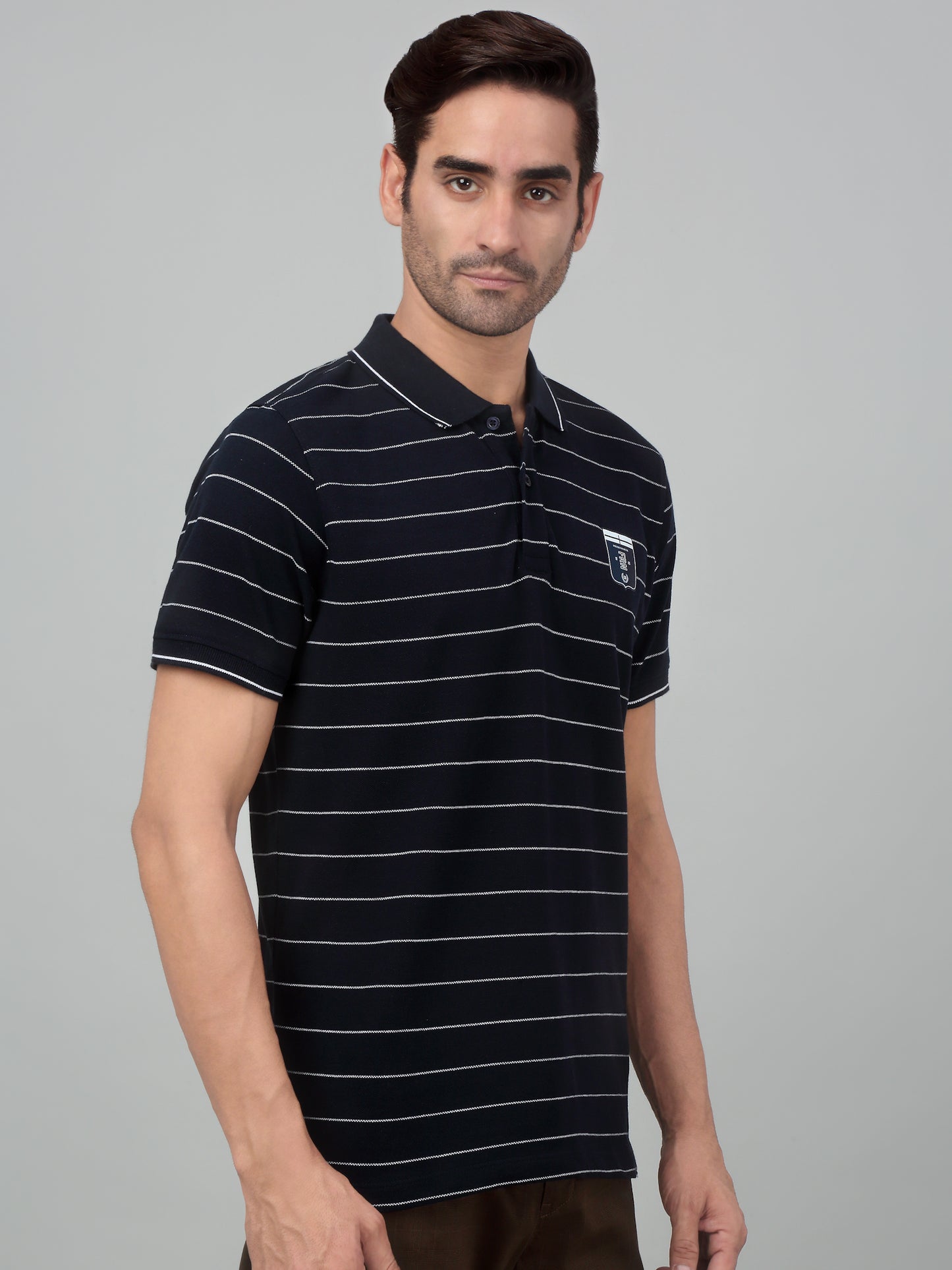 T-Shirt for Men | Breathable & Soft with Color Fastness Regular Fit Polo Neck Poly Cotton Fabric Striped Pattern