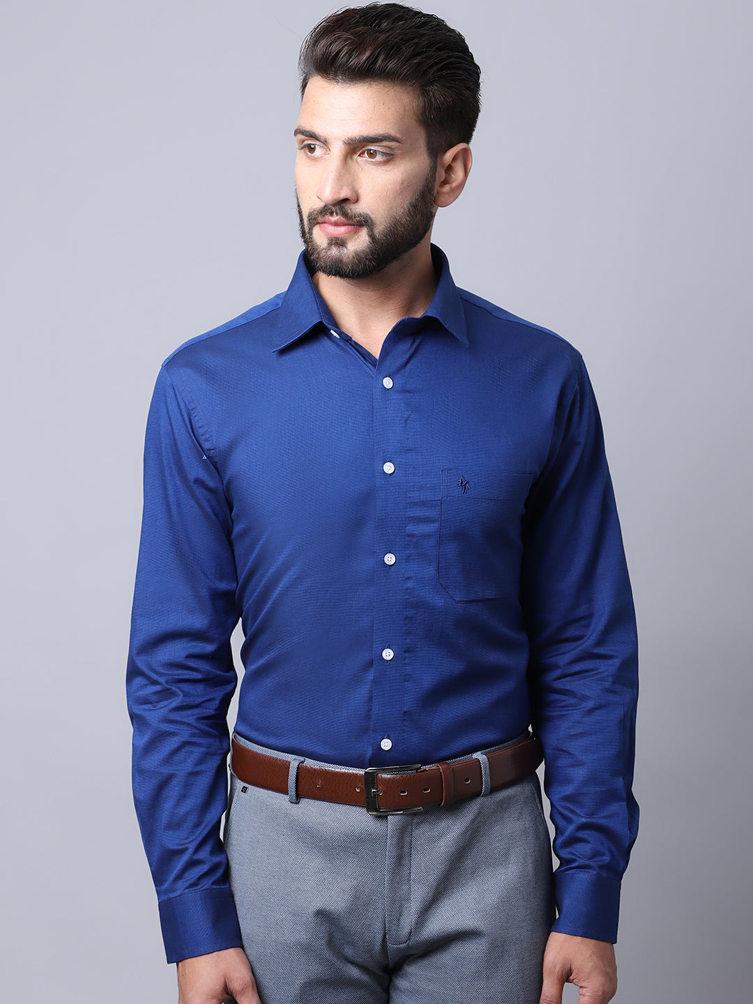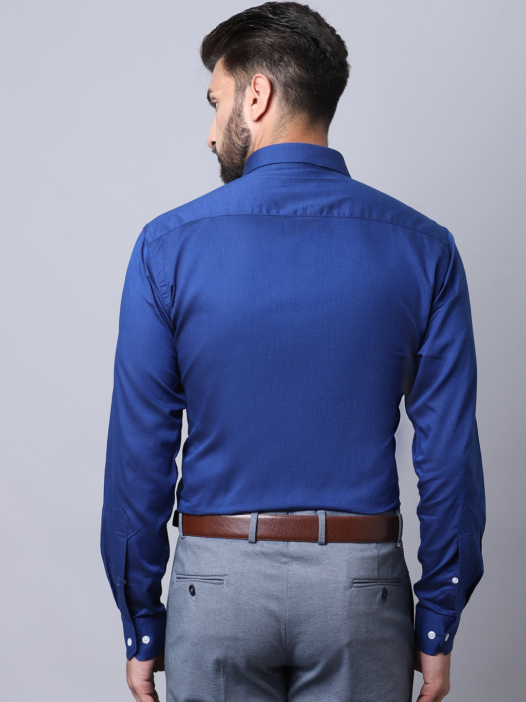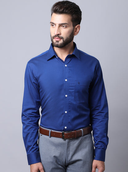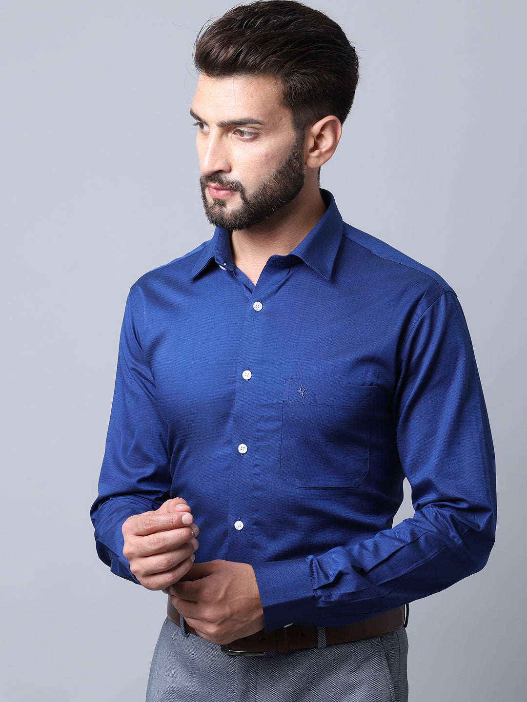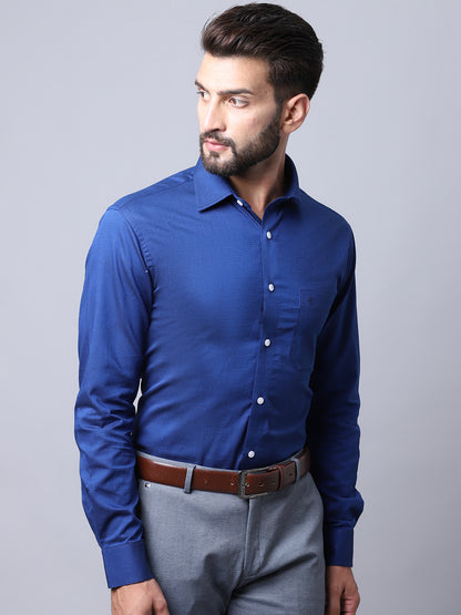 Men's Navy Blue Formal Fil a Fil Plain Full Sleeve Shirt