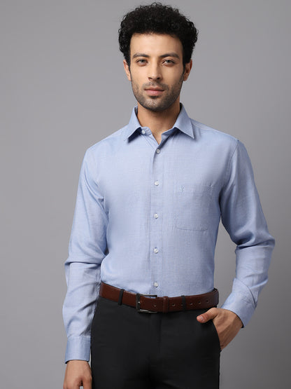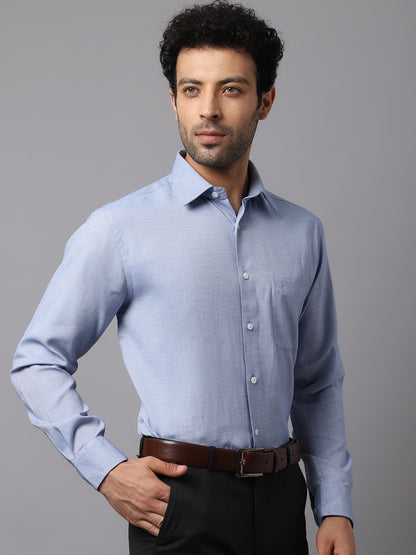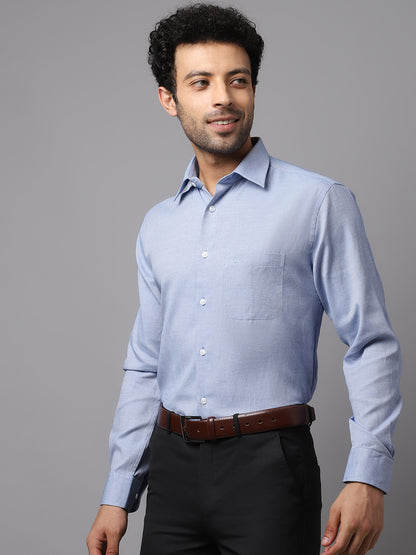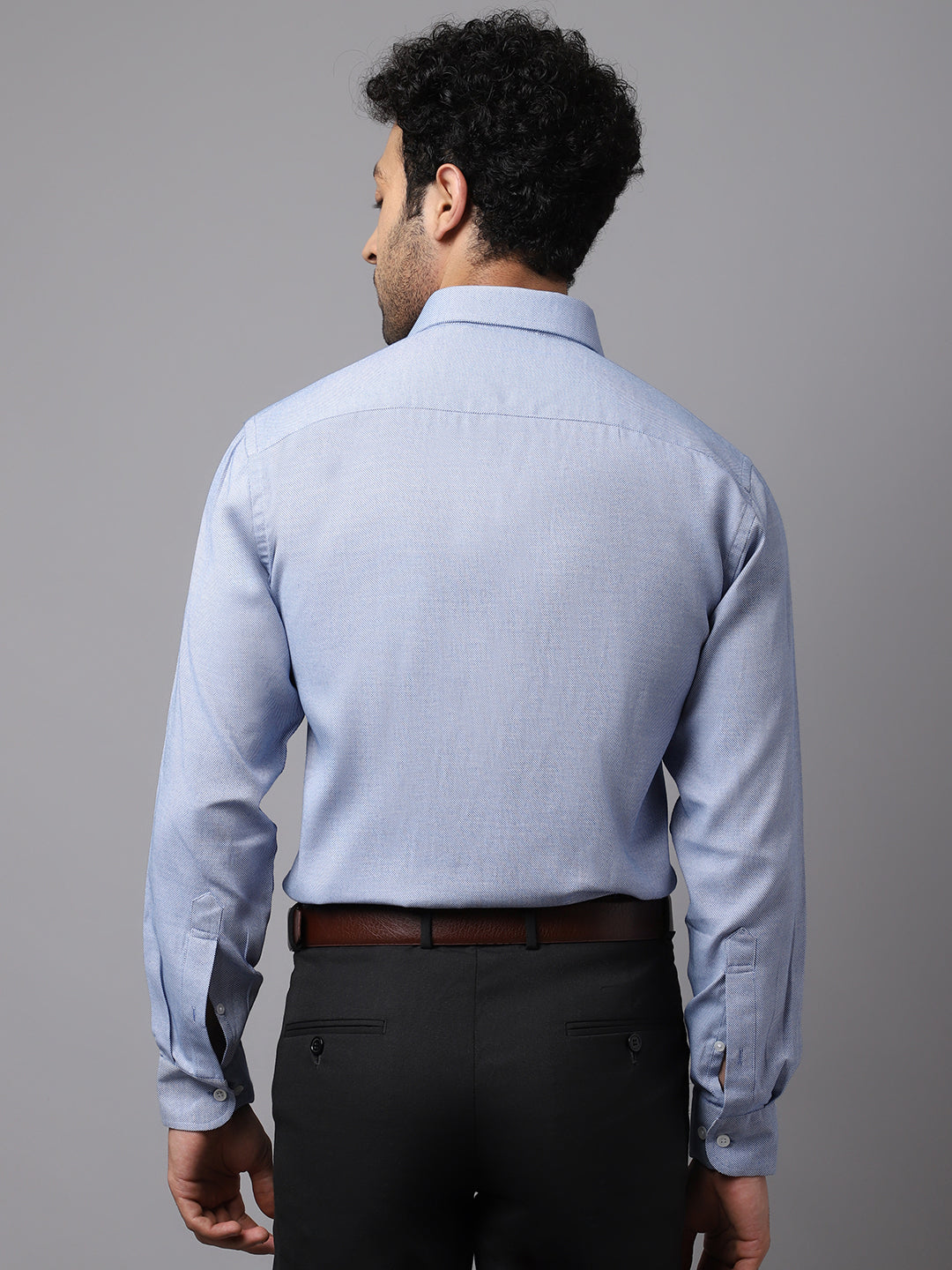 Men's Blue Formal Self Textured Full Sleeve Shirt